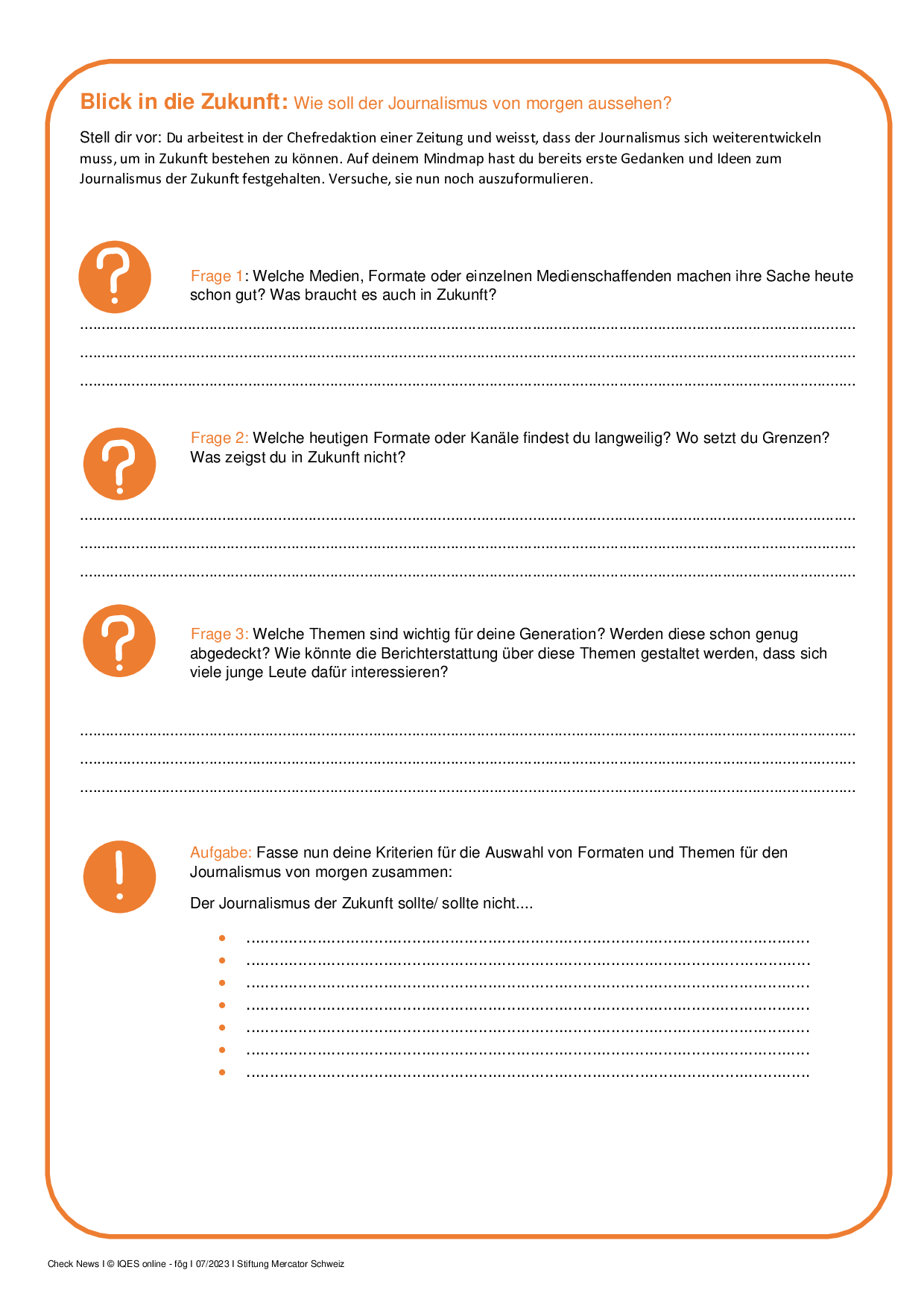 Reflexions-Blatt «Hungrig nach Klicks?»