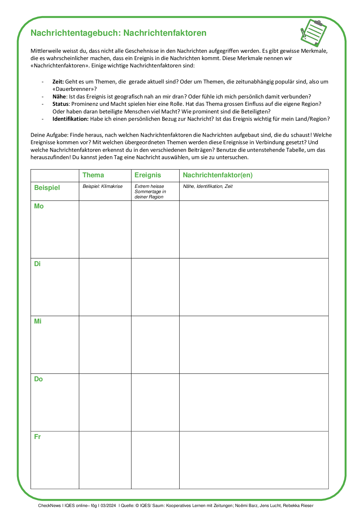 Nachrichtentagebuch: Nachrichtenfaktoren