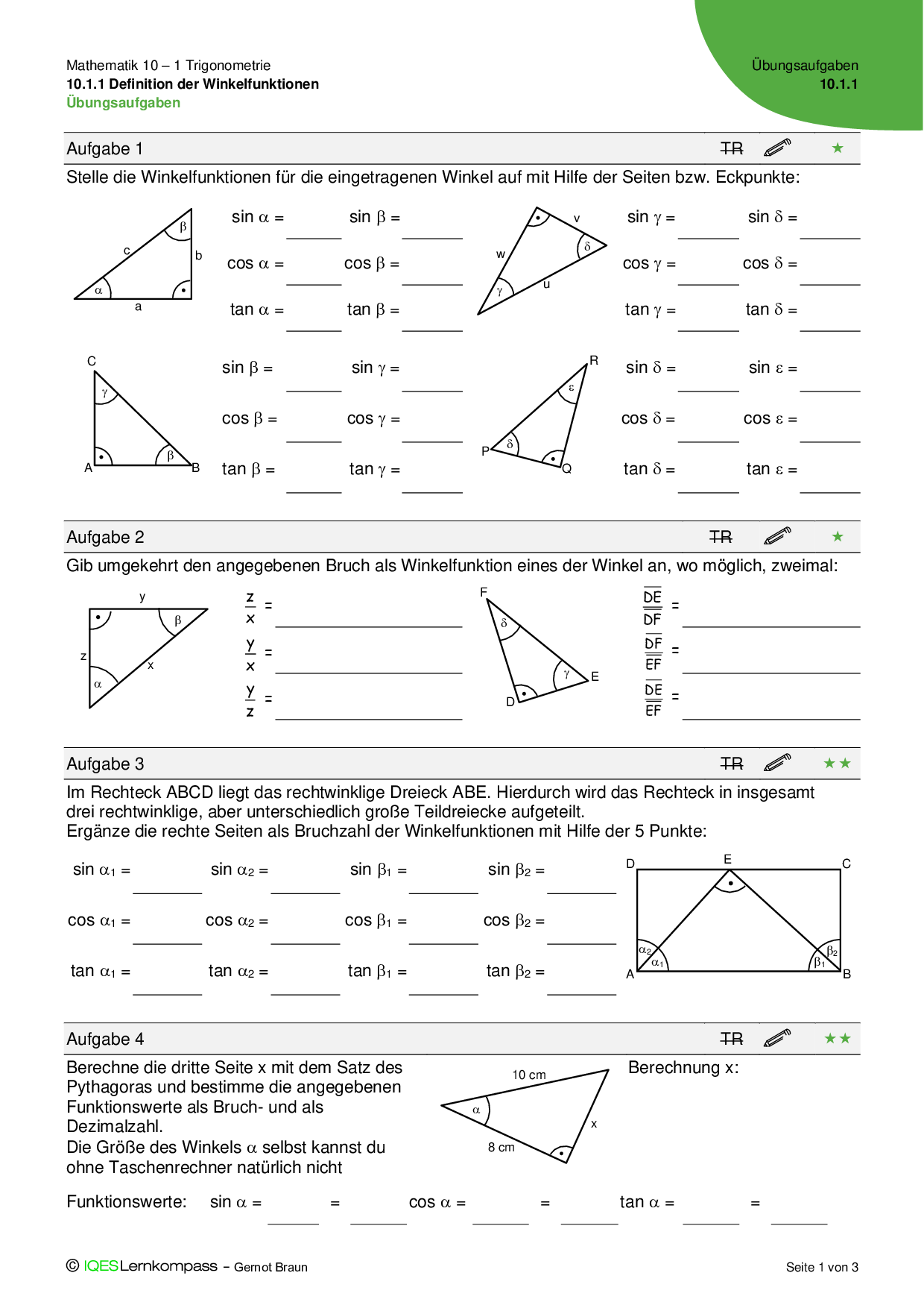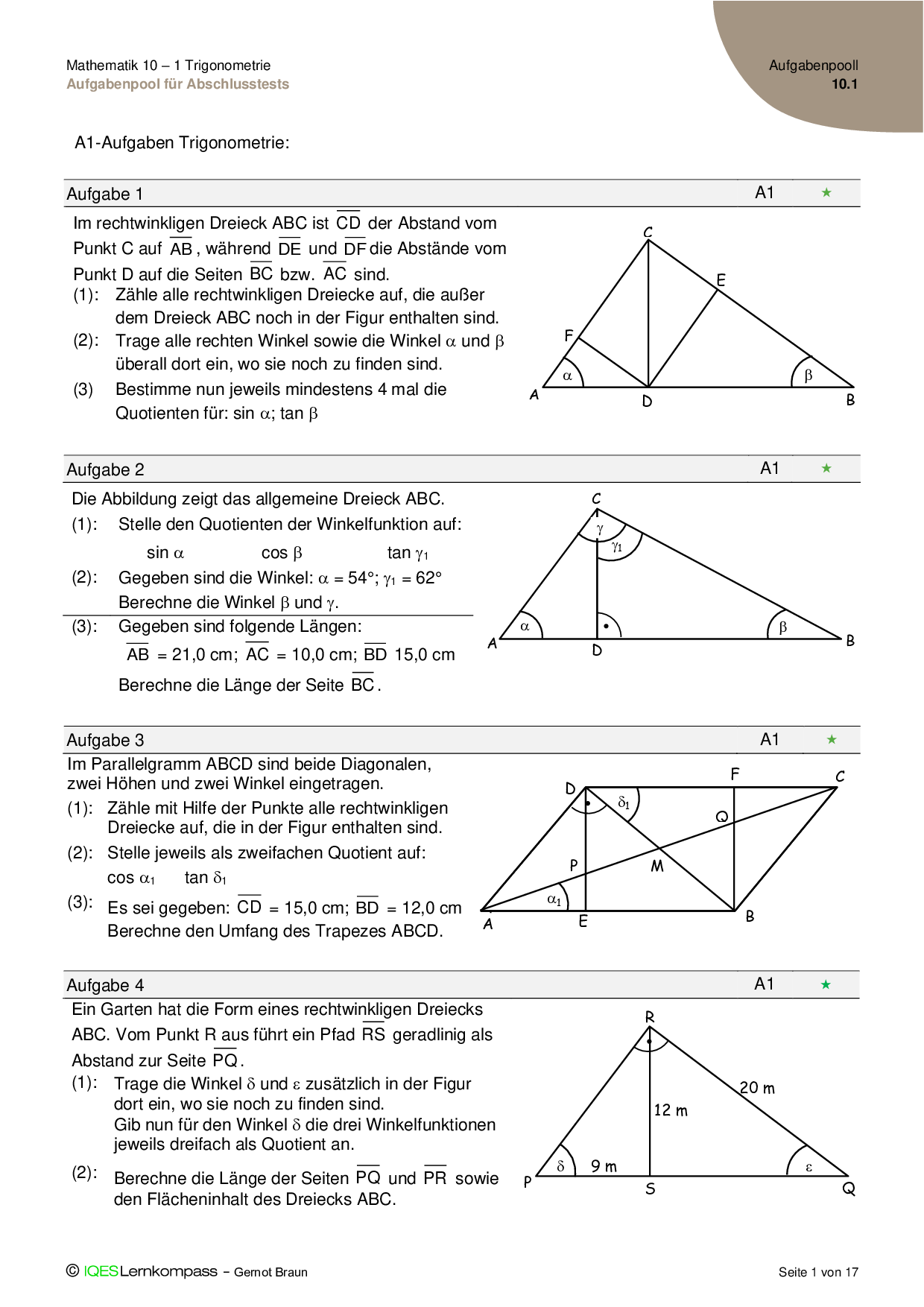 10.1 Trigonometrie Aufgabenpool für Abschlusstests