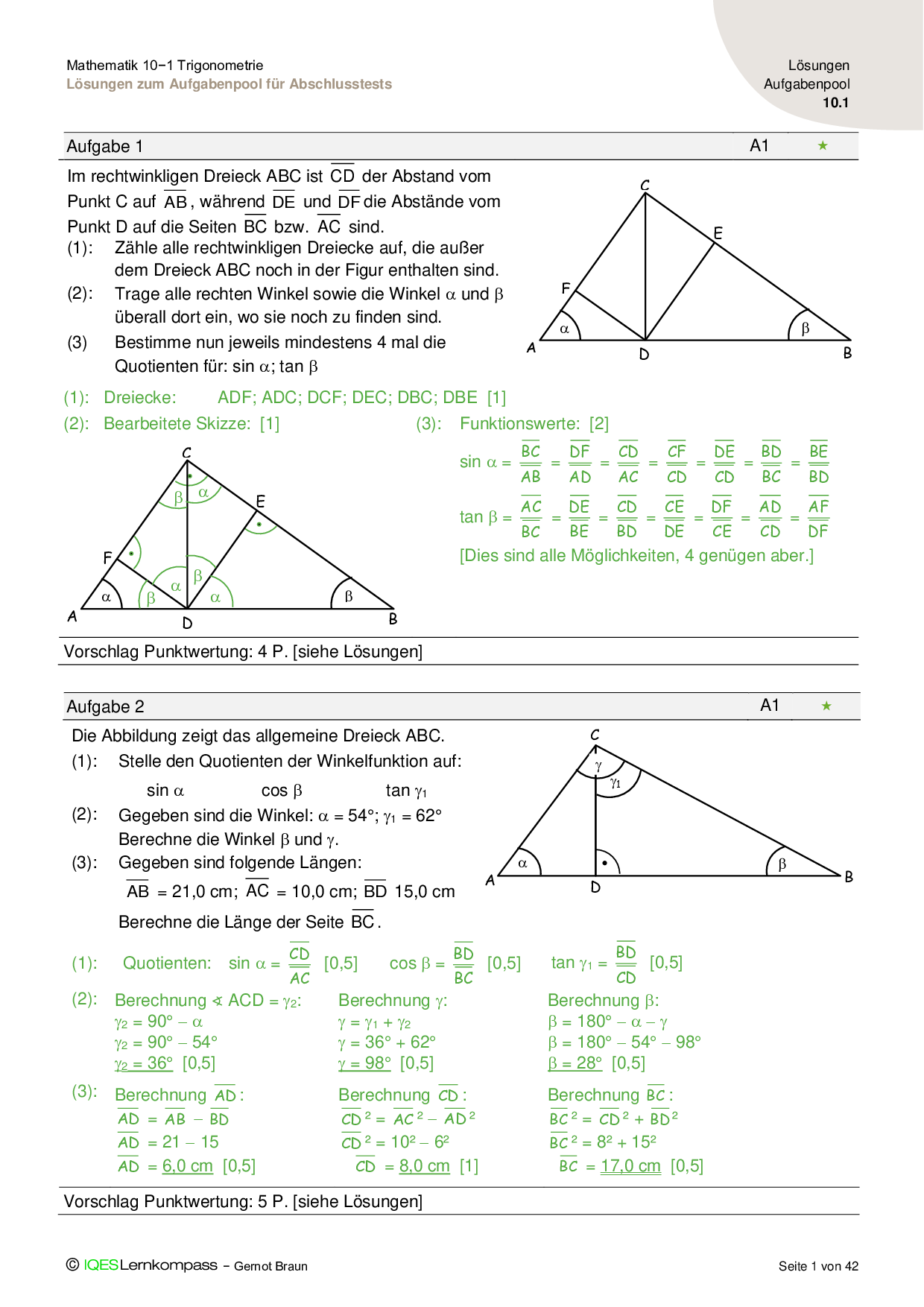 10.1 Trigonometrie Lösungen zum Aufgabenpool für Abschlusstests