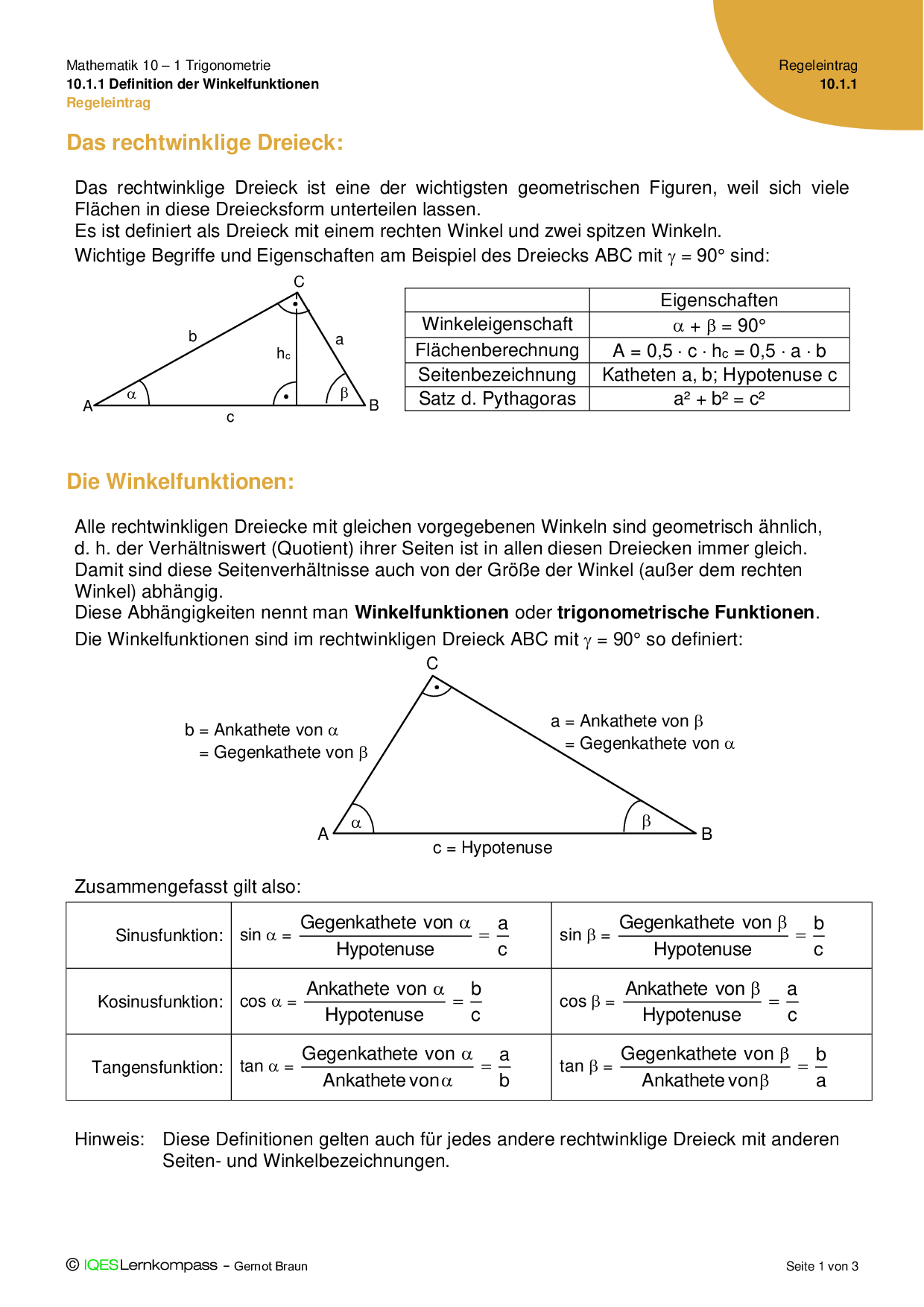 10.1.1 Definition der Winkelfunktionen Regeleintrag
