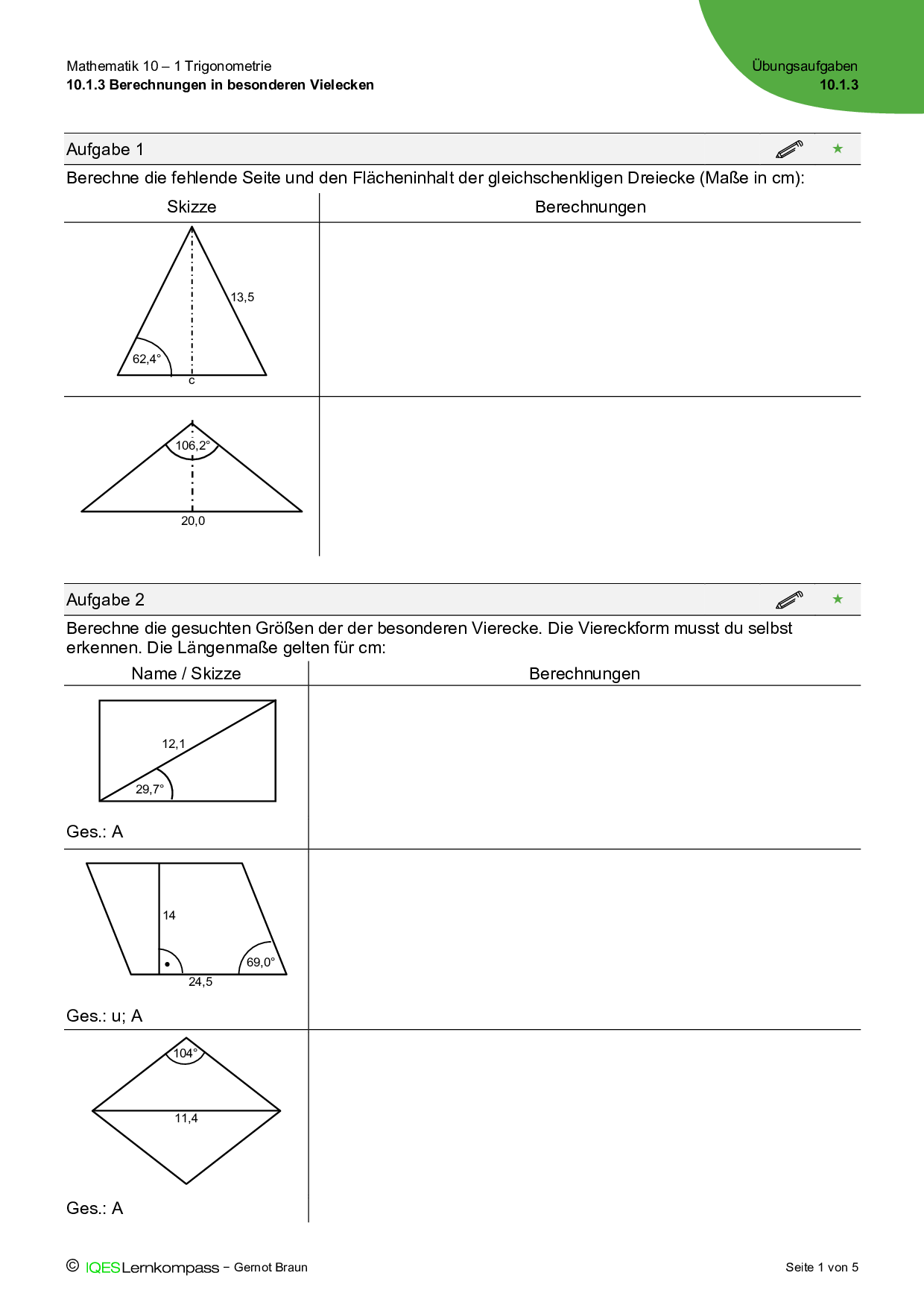 10.1.3 Berechnungen in besonderen Vielecken Übungsaufgaben