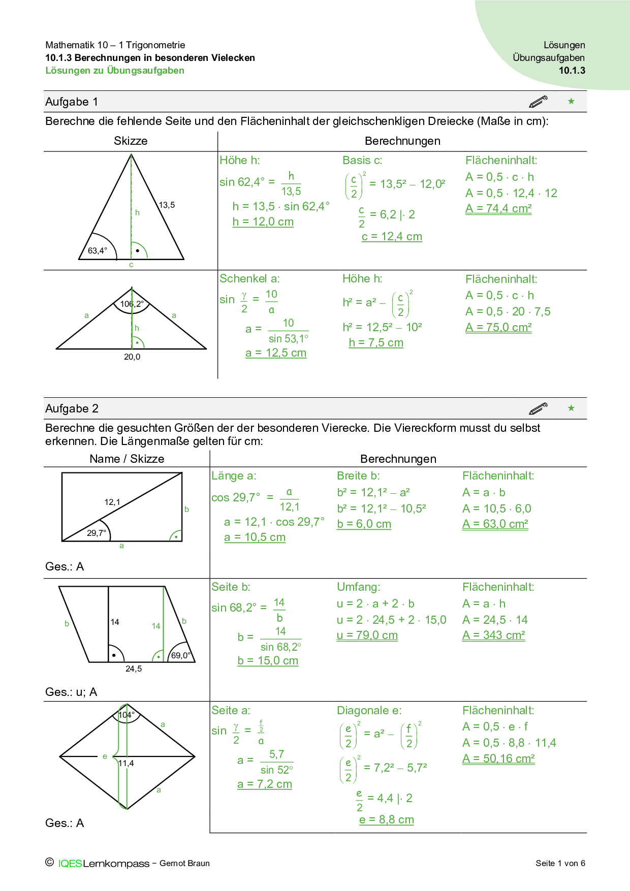 10.1.3 Berechnungen in besonderen Vielecken Lösungen zu Übungsaufgaben