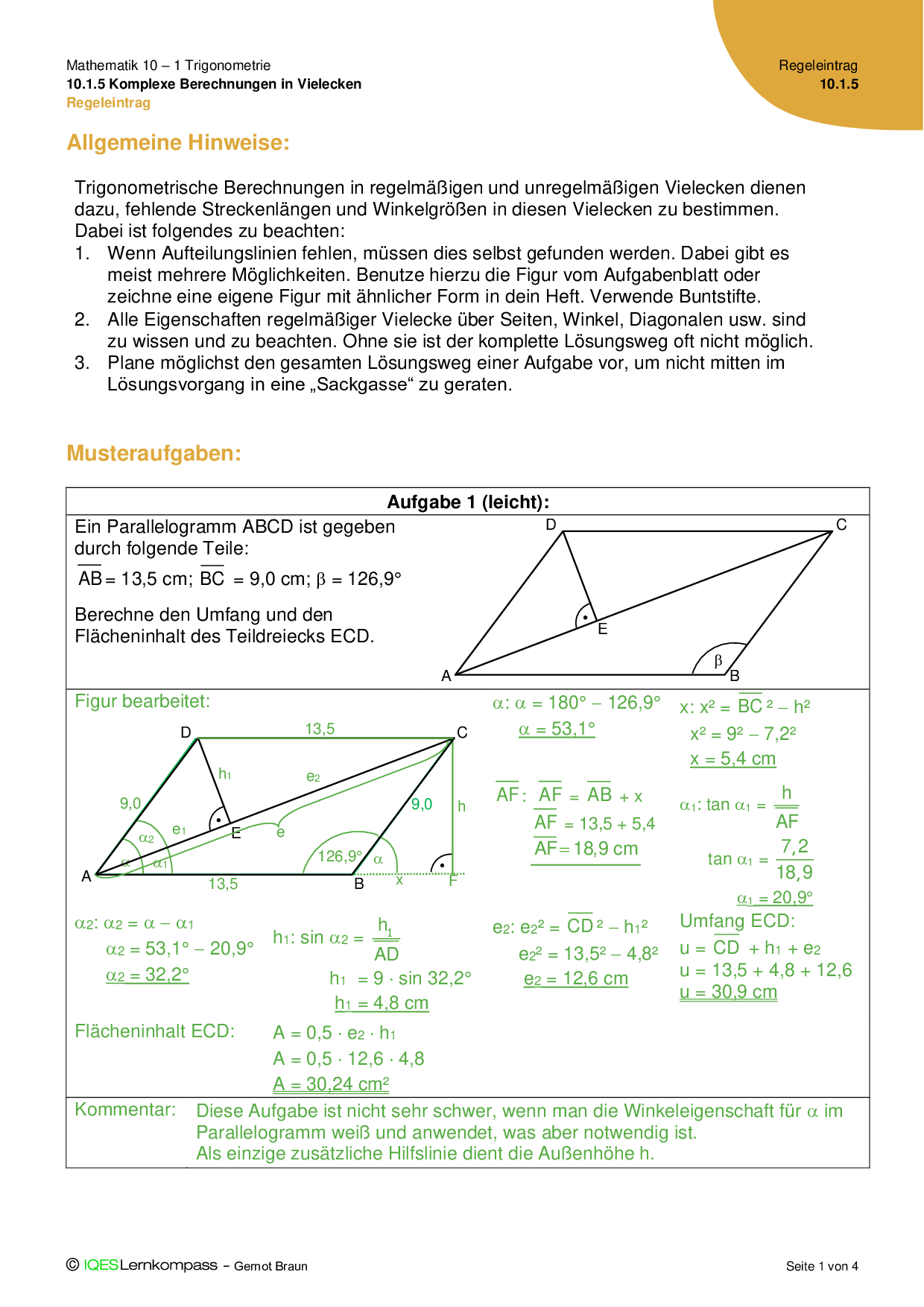 10.1.5 Komplexe Berechnungen in Vielecken Lösungen zu Übungsaufgaben
