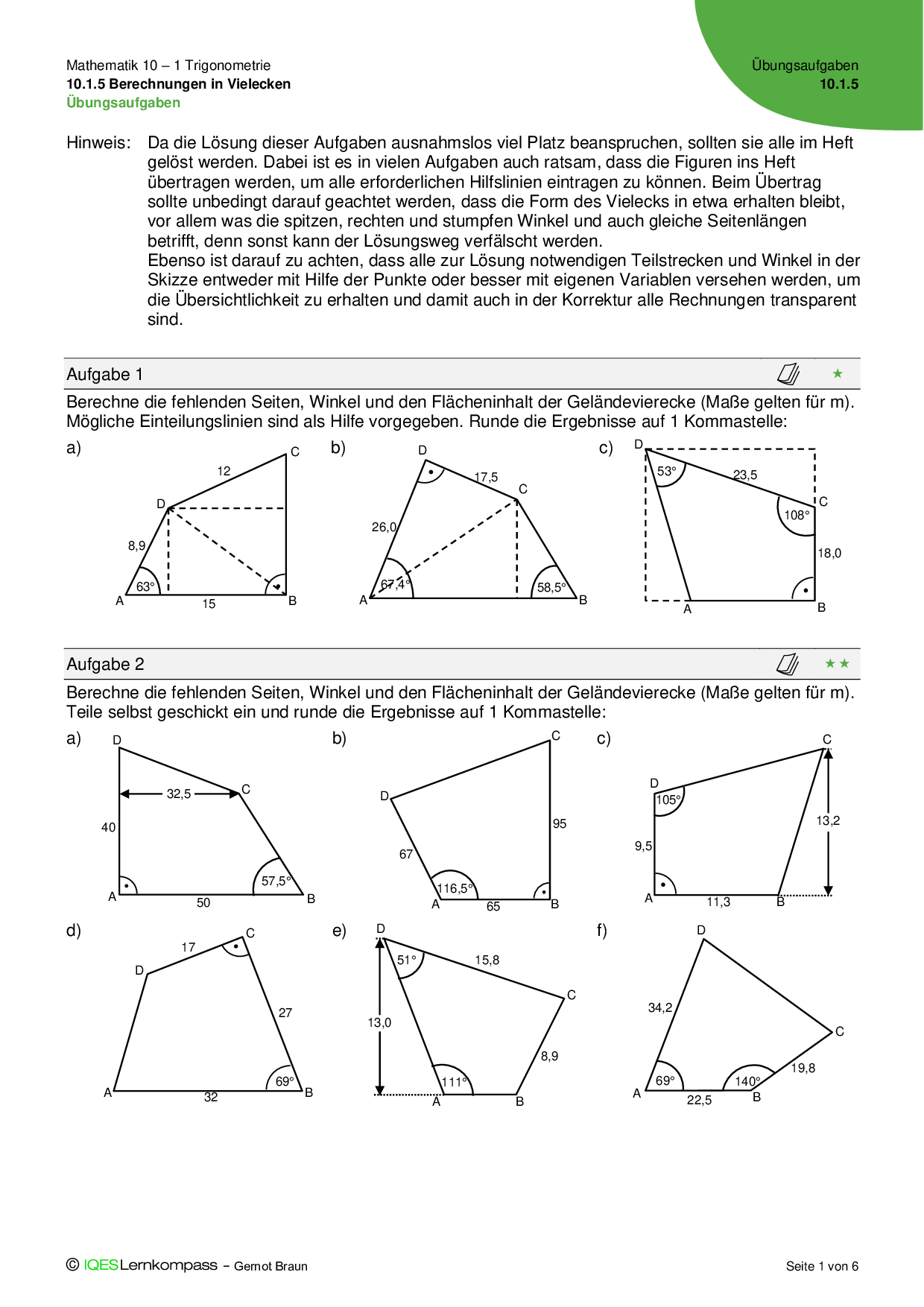 10.1.5 Komplexe Berechnungen in Vielecken Übungsaufgaben