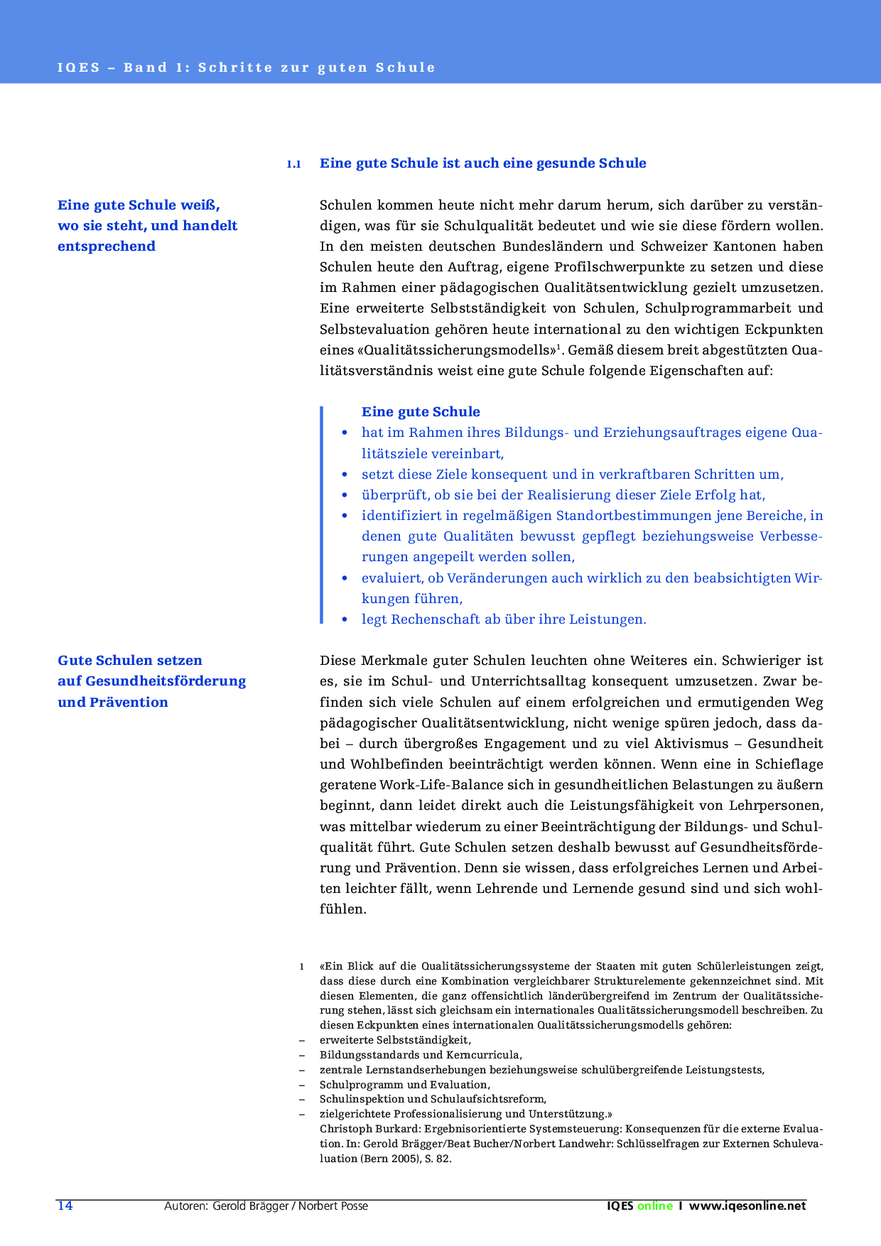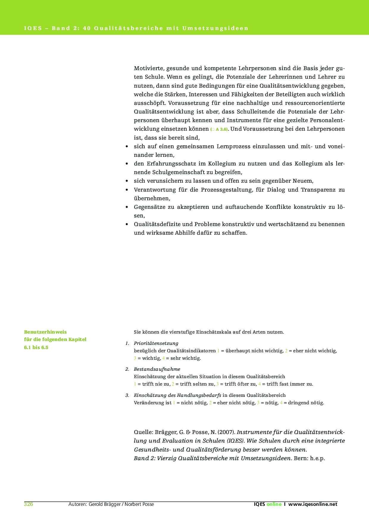Herkunft: Gerold Brägger, Norbert Posse: Instrumente für die Qualitätsentwicklung und Evaluation in Schulen (IQES), Band 1. hep verlag, 2007. ISBN 9783039053483