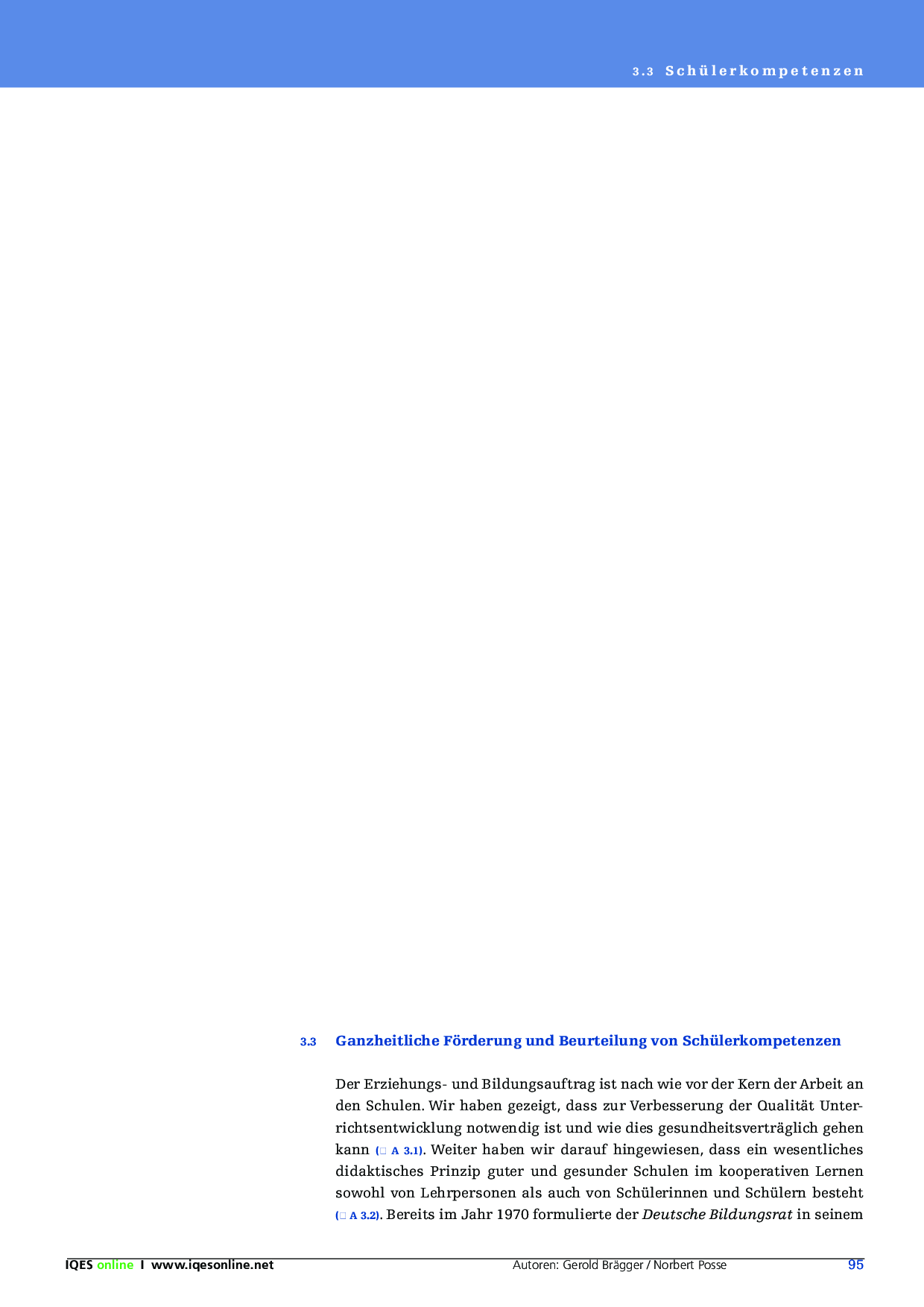 In diesem Auszug wird die ganzheitliche Förderung und Beurteilung von Schülerkompetenzen verhandelt. Es geht darum, eine neue Lernkultur mit einem ganzheitlichen Lernverständnis, mit einer salutogenen Ressourcenorientierung und einer kooperativen Handlungspraxis zu schaffen.