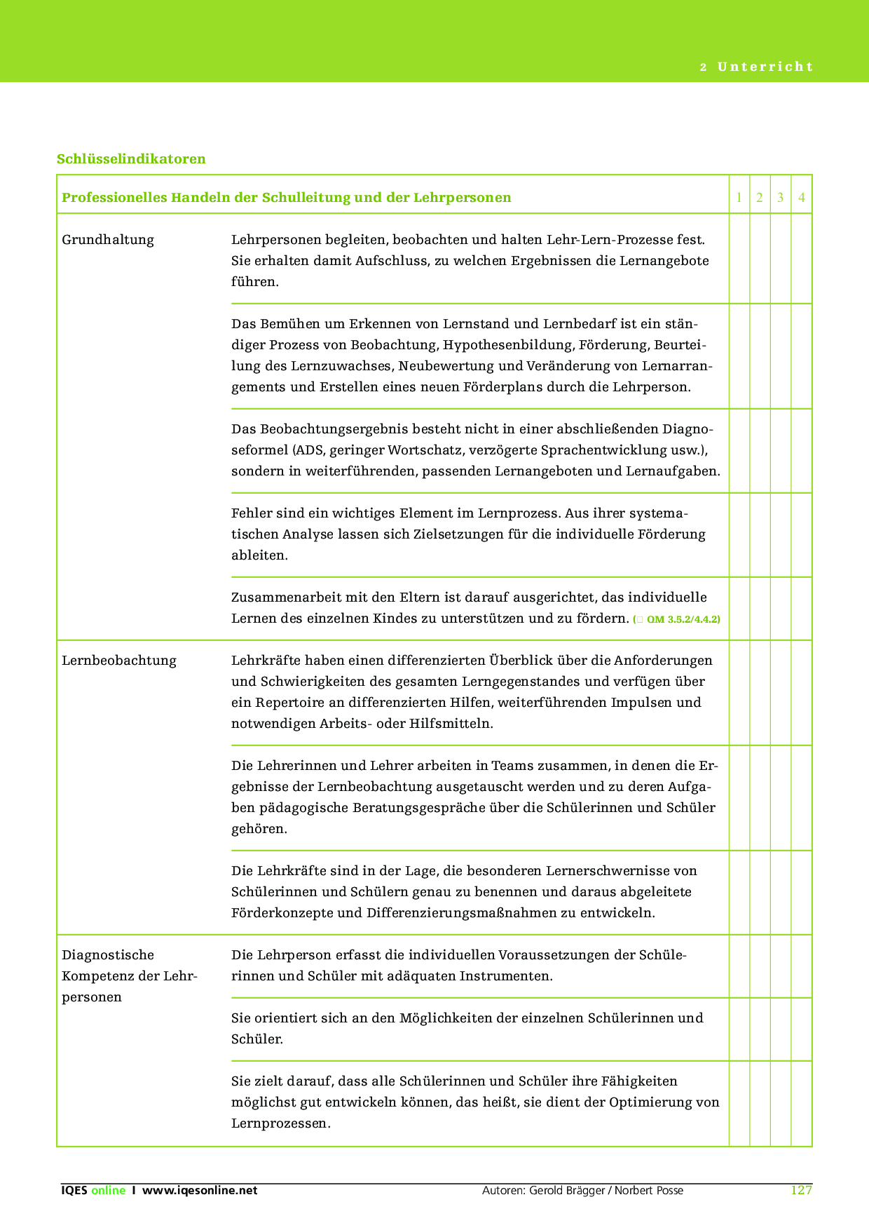 Herkunft: Gerold Brägger, Norbert Posse: Instrumente für die Qualitätsentwicklung und Evaluation in Schulen (IQES), Band 2. hep verlag, 2007. ISBN 9783039053483
