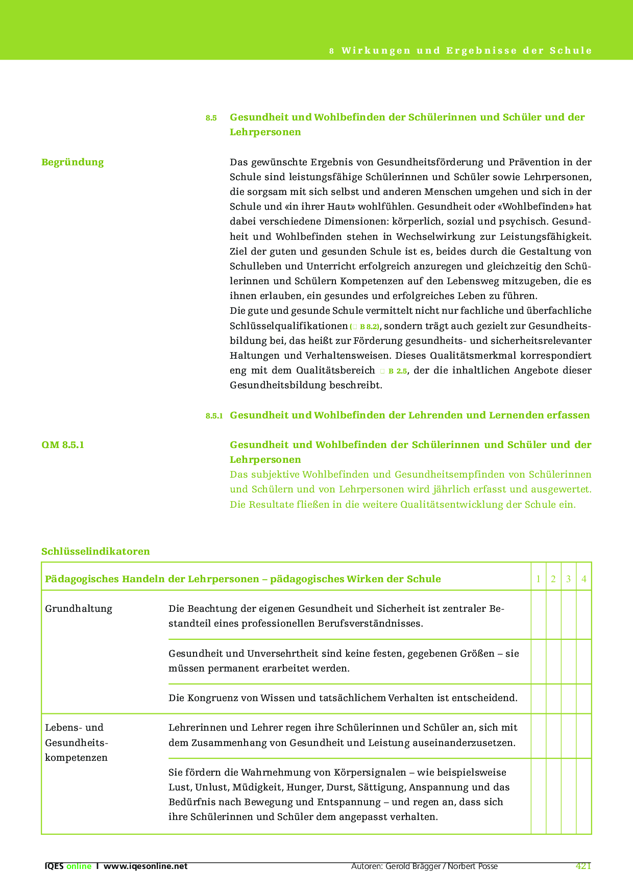 8.5 Gesundheits und Wohlbefinden der Schülerinnen und Schüler und der Lehrpersonen