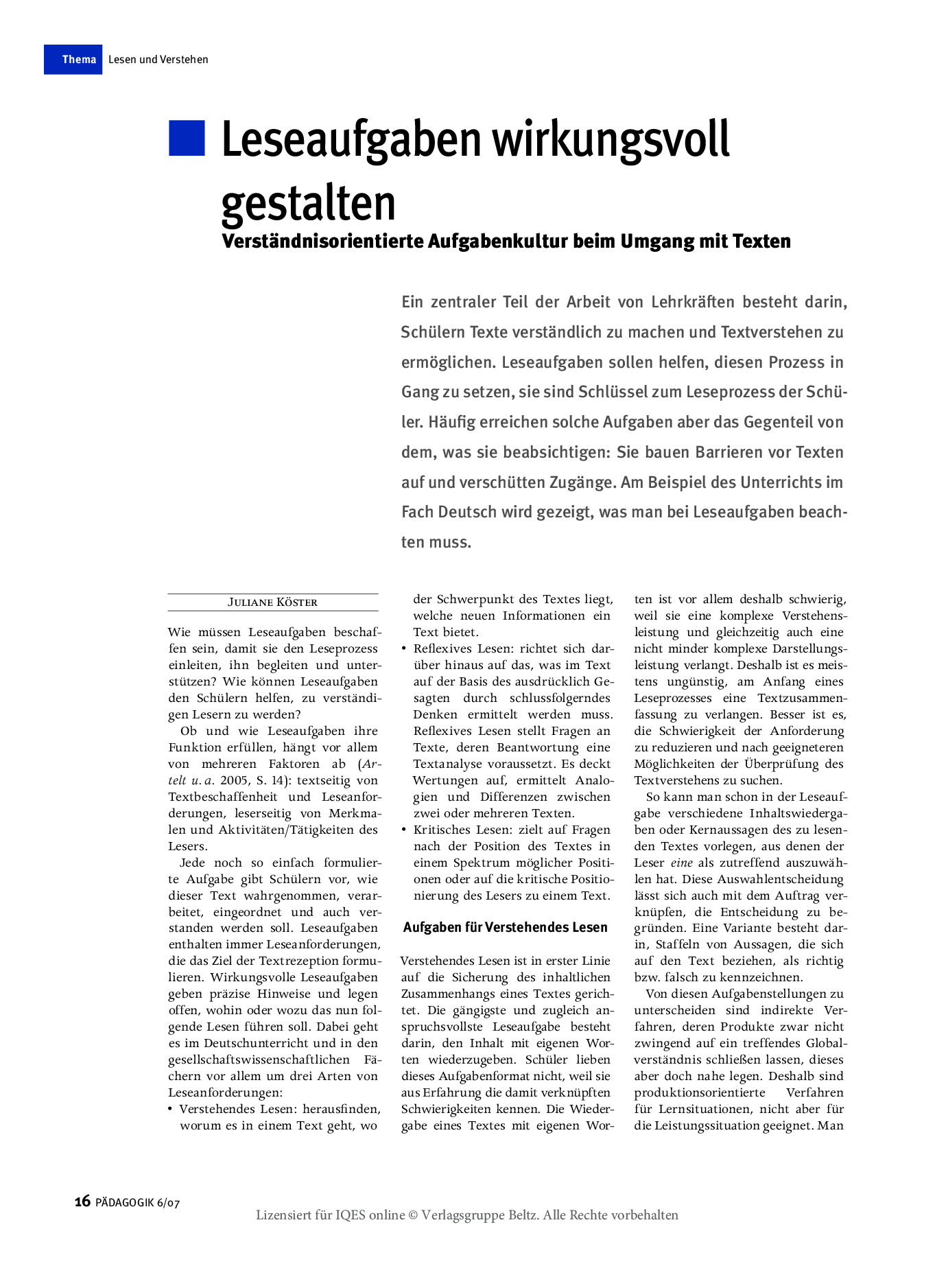 Herkunft: PÄDAGOGIK 6/07, lizensiert für IQES online © Verlagsgruppe Beltz