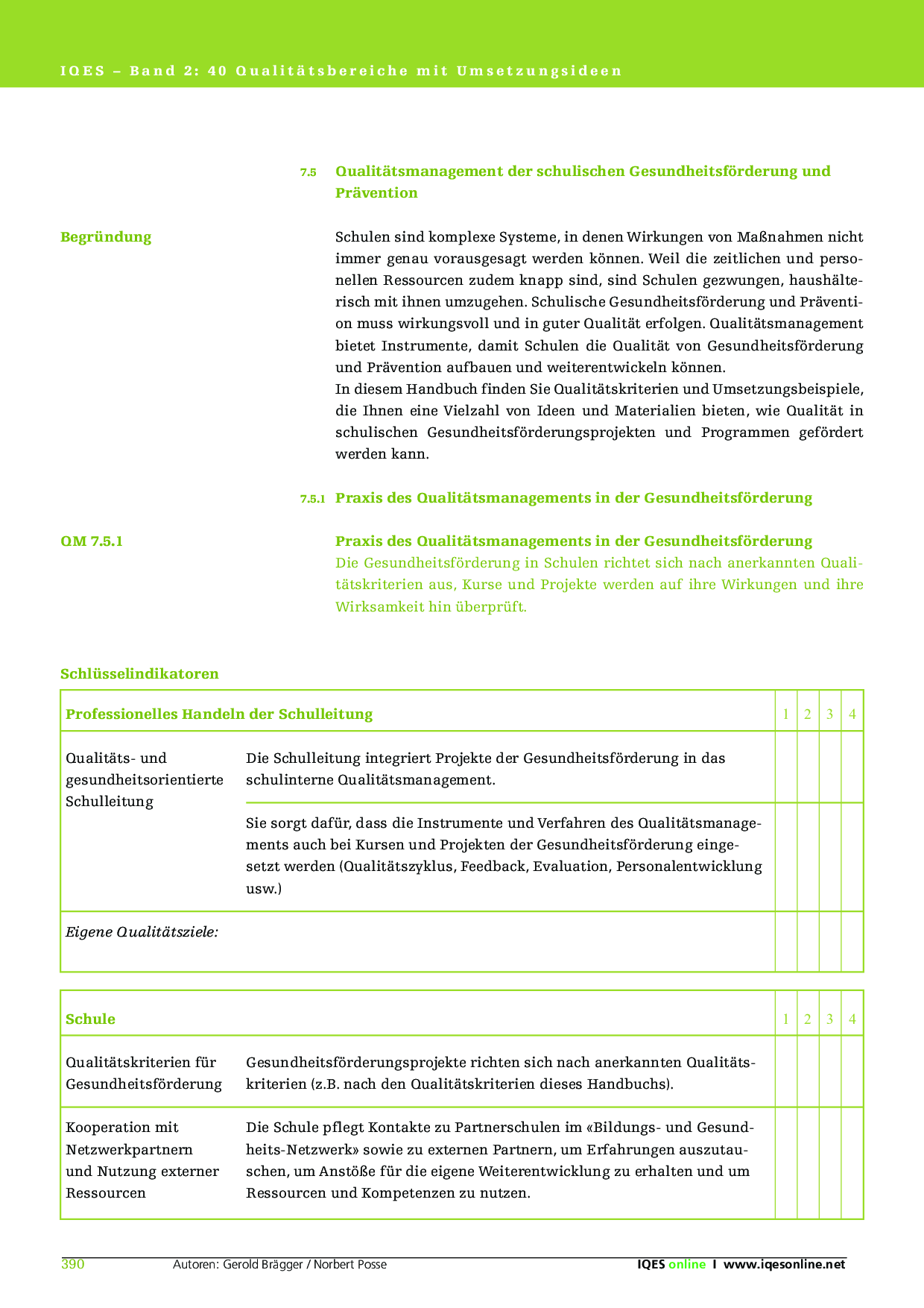 7.5 Qualitätsmanagement der schulischen Gesundheitsförderung und Prävention