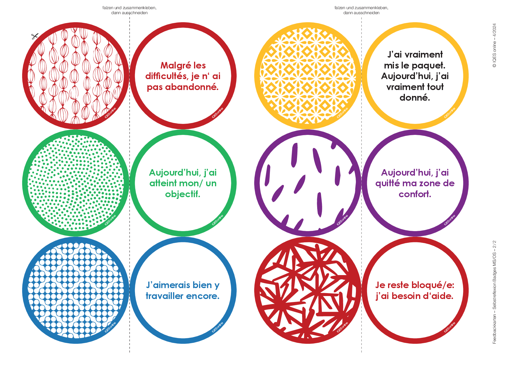 Selbstreflexion Badges Klasse 5-10 (französisch)