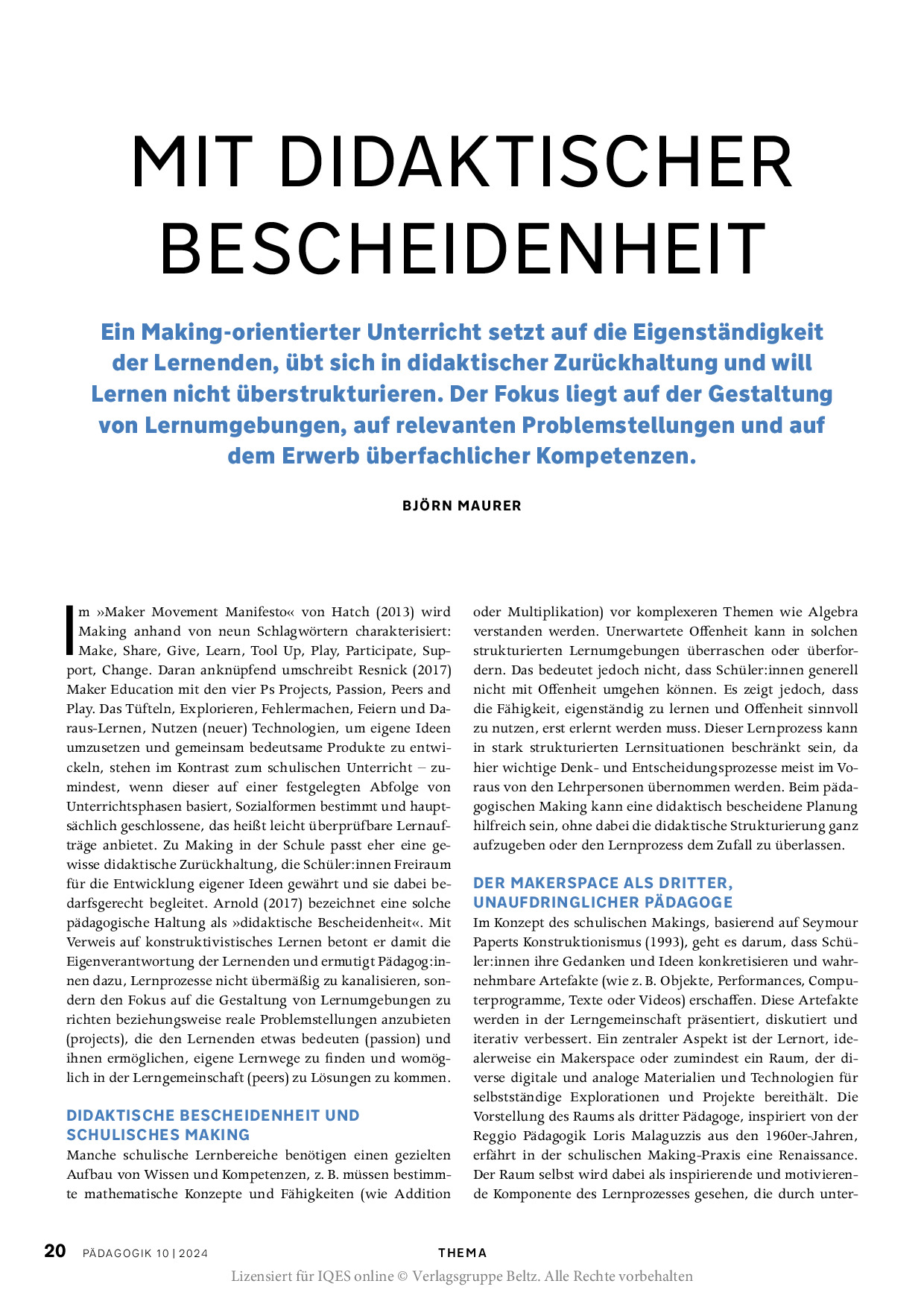 Herkunft: PÄDAGOGIK 10/24, Lizensiert für IQES online © Verlagsgruppe Beltz.