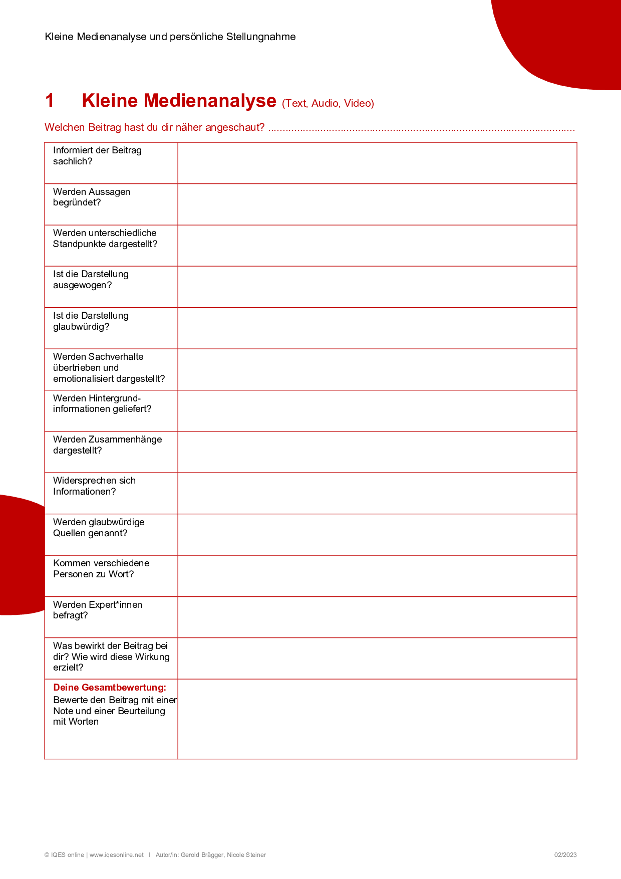 Berichte kritisch lesen: Checkliste »Merkmale eines Berichts«