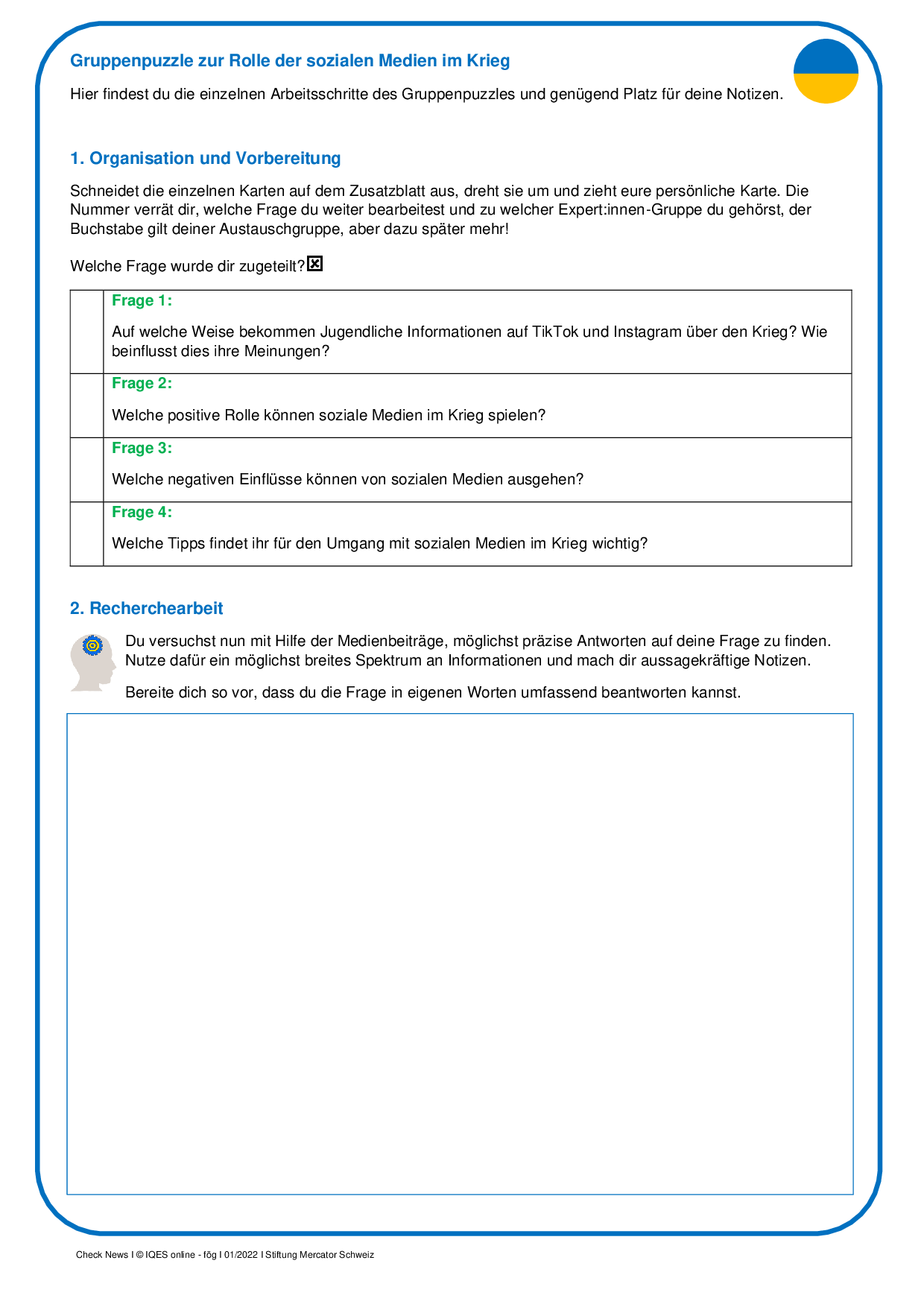 Gruppenpuzzle zur Rolle der sozialen Medien im Krieg