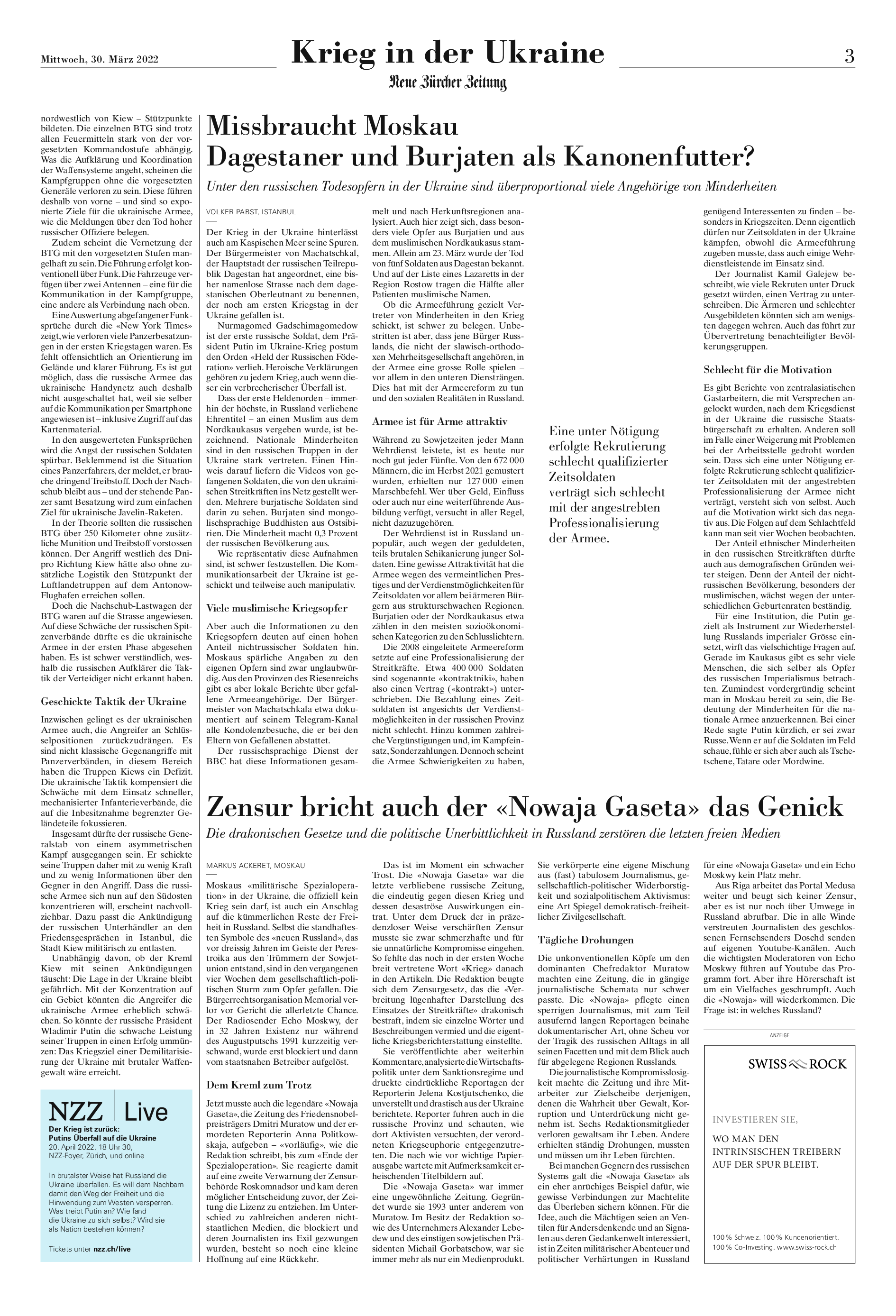 «Moskaus Zensurgesetz: Die cleveren Titelseiten der «Nowaja Gaseta»» ( Tages-Anzeiger)