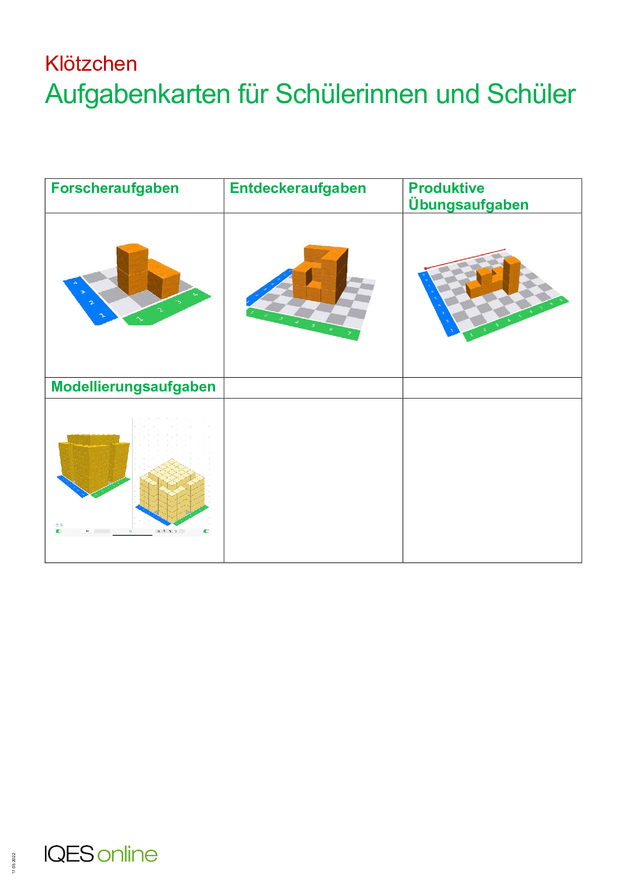 Aufgabenkarten für Schüler/innen: Lernen mit der Klötzchen-App