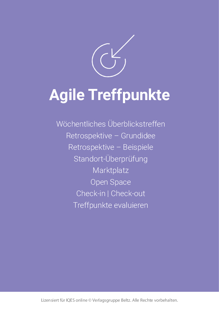 Agile Zusammenarbeit zeichnet sich durch einen in der Lerngruppe bzw. im Unterrichtsteam vordefinierten Rhythmus aus. Die agilen Treffpunkte führen hier entlang. Agile Treffpunkte werden so gestaltet, dass sie eher kürzer sind, dafür öfter stattfinden. Offene Themen, Fragen oder Hindernisse können so direkt eingebracht und im Team transparent behandelt werden.