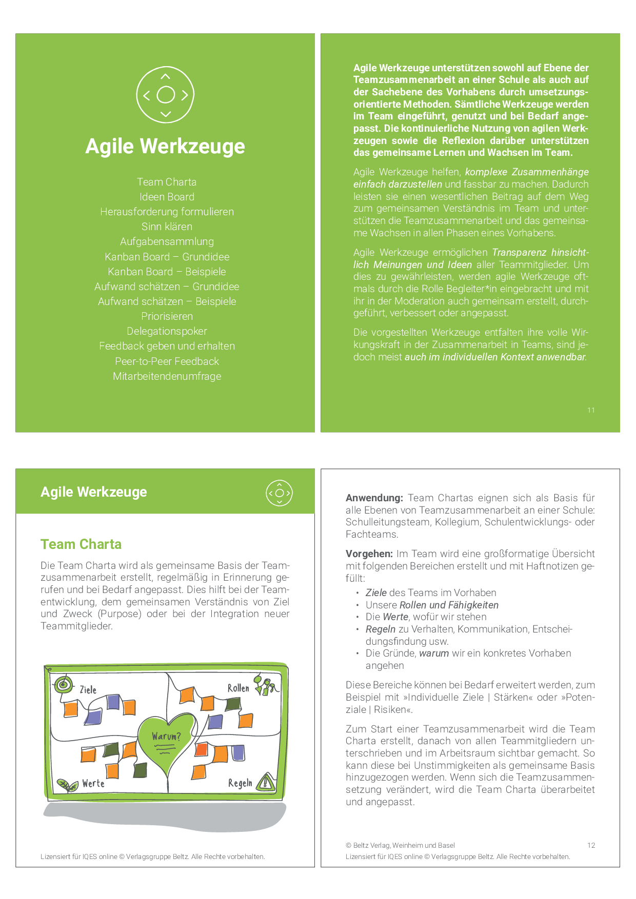 Agile Werkzeuge helfen, komplexe Zusammenhänge beim Lernen einfach darzustellen und fassbar zu machen. Sie leisten einen wesentlichen Beitrag auf dem Weg zu einem gemeinsamen Lernverständnis. Sie unterstützen die Teamzusammenarbeit in allen Phasen eines Lernvorhabens. Die kontinuierliche Nutzung von agilen Werkzeugen sowie die Reflexion darüber ermöglichen das gemeinsame Wachsen im Team.