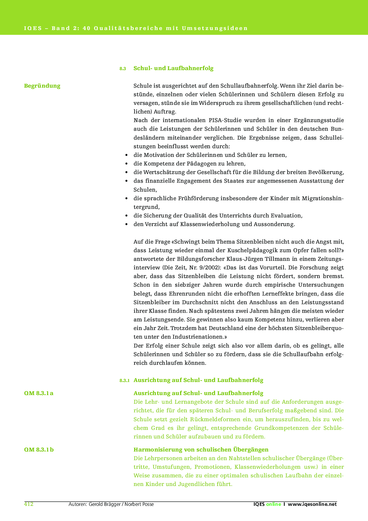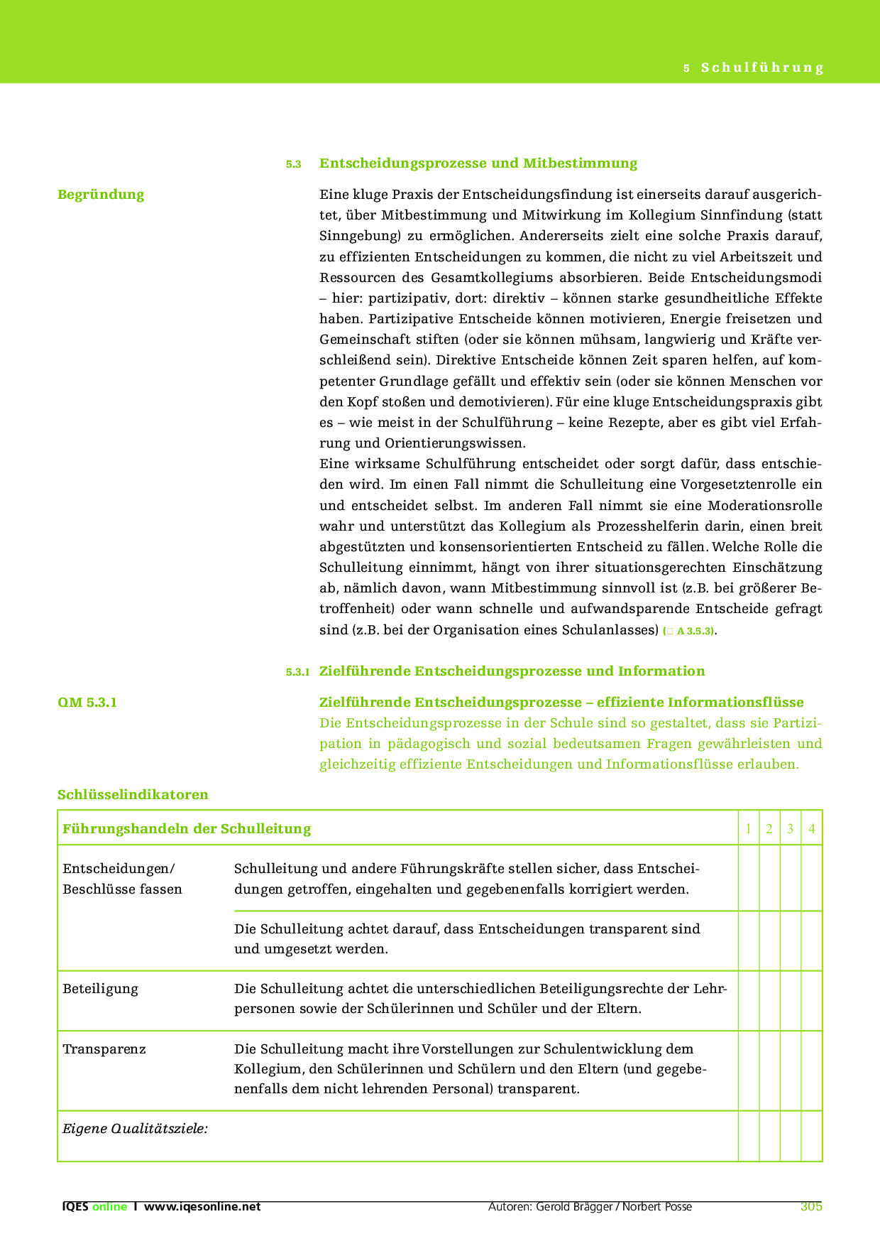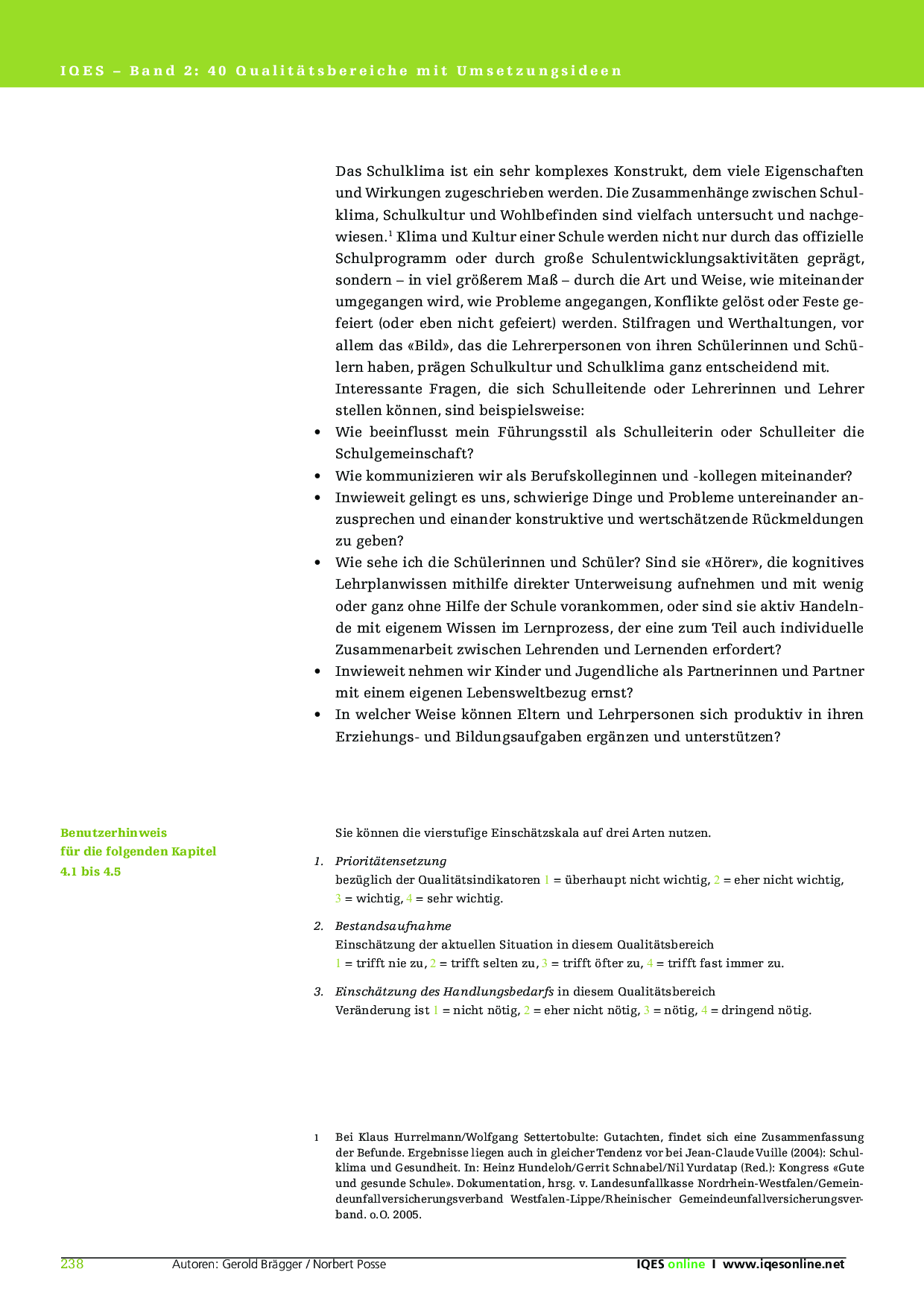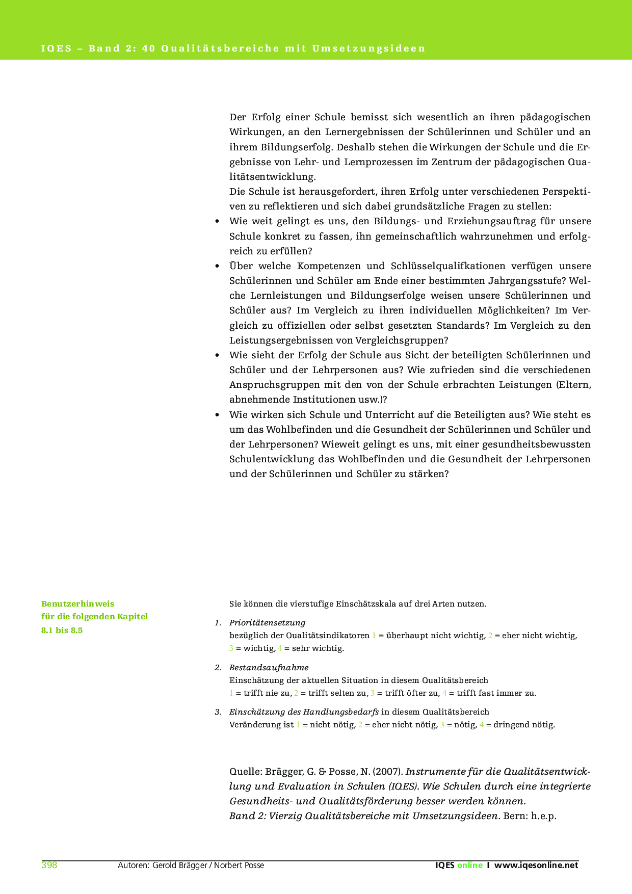 Herkunft: Gerold Brägger, Norbert Posse: Instrumente für die Qualitätsentwicklung und Evaluation in Schulen (IQES), Band 1. hep verlag, 2007. ISBN 9783039053483