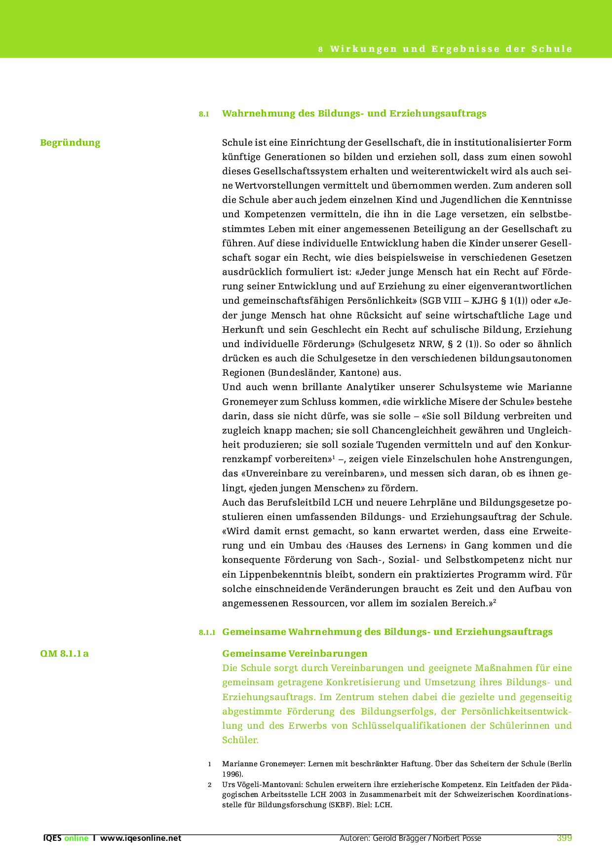 8.1 Wahrnehmung des Bildungs- und Erziehungsauftrags