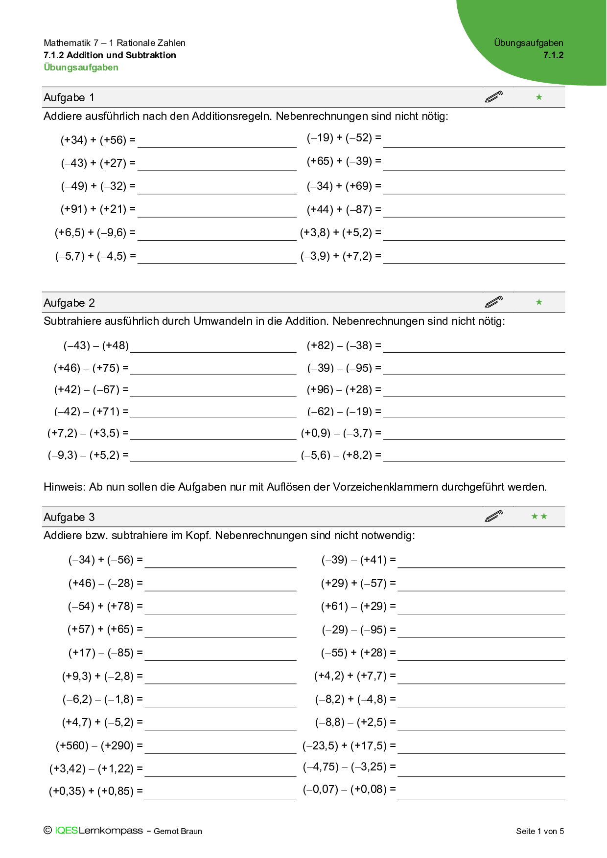 7.1.2 Addition und Subtraktion – Übungsaufgaben
