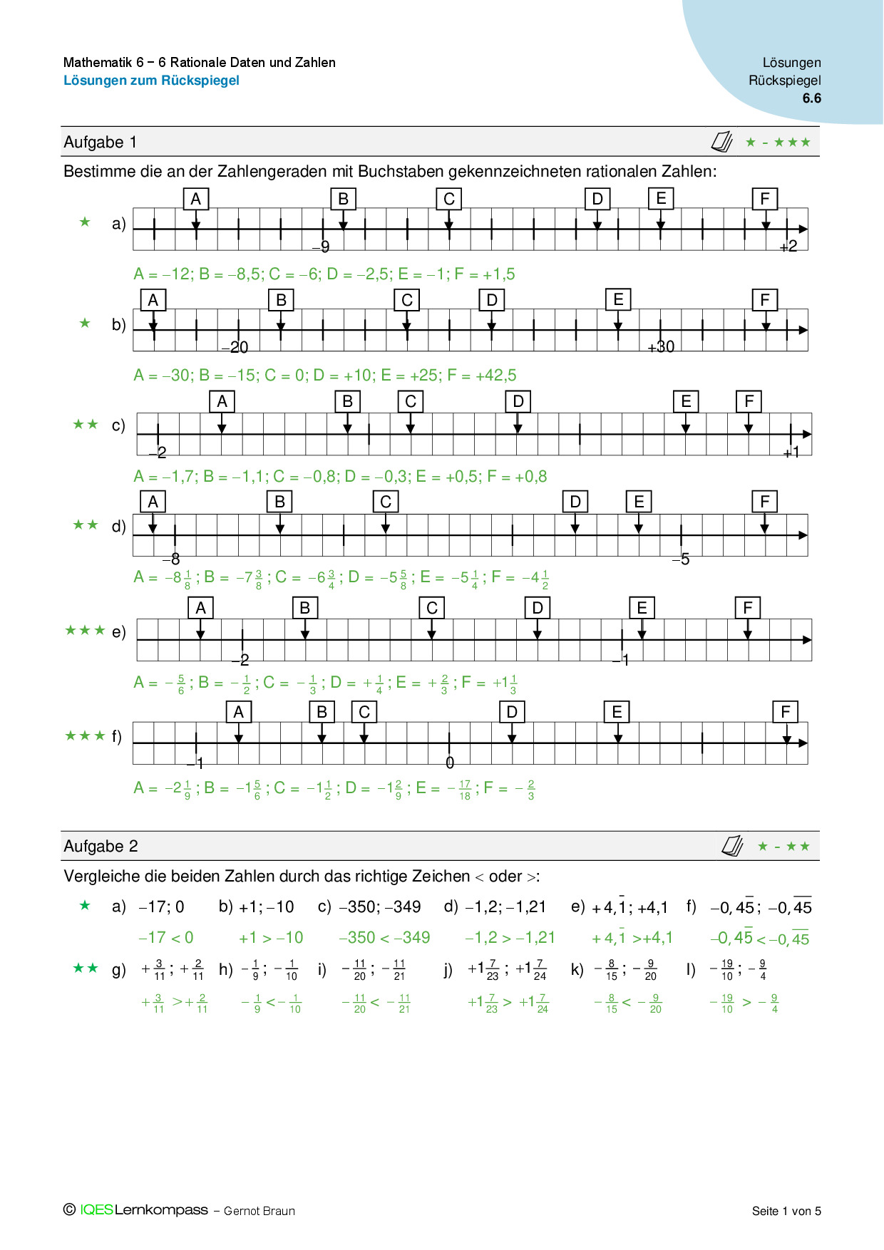 6.6 Rationale Zahlen und Daten – Lösungen zum Rückspiegel