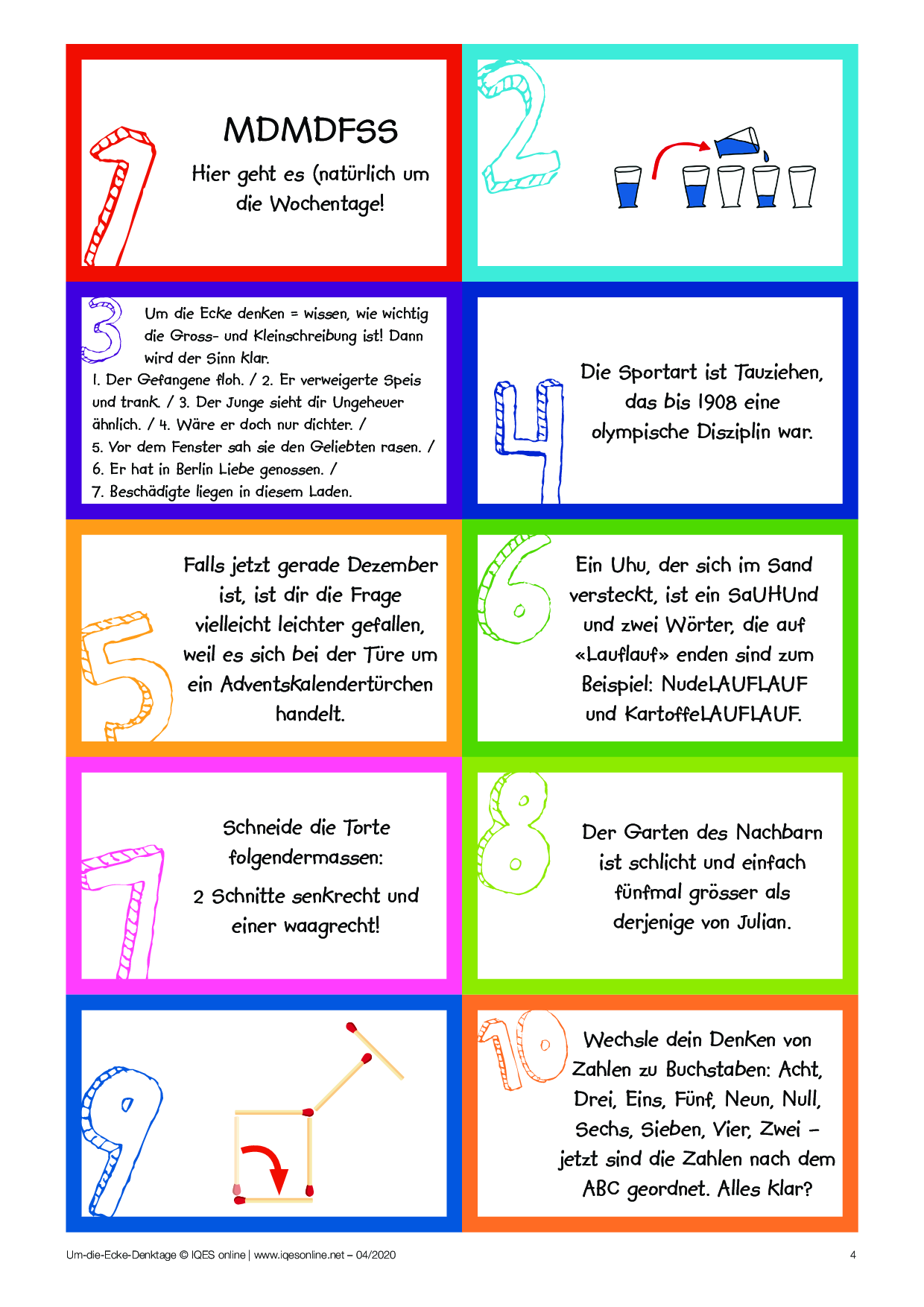«Um die Ecke-Denktage» Lösungen