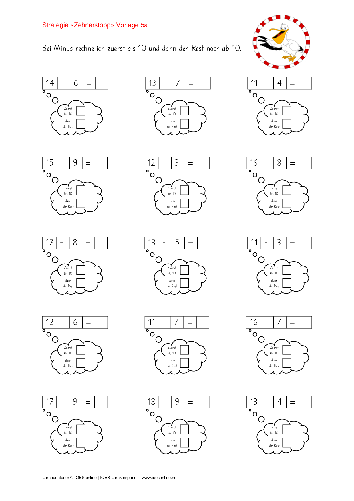 Zehnerübergang «Minus Strategie» - Zehnerstopp (Vorlage 2)