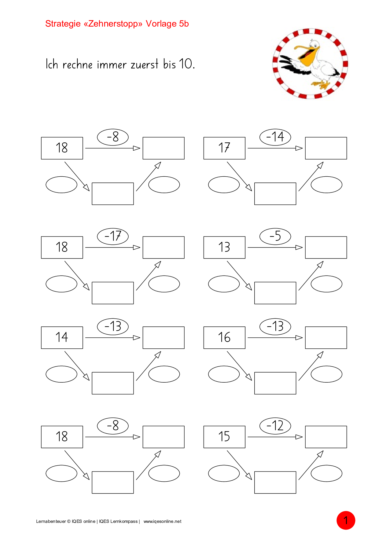 Zehnerübergang «Minus Strategie» - Zehnerstopp (Vorlage 5b)