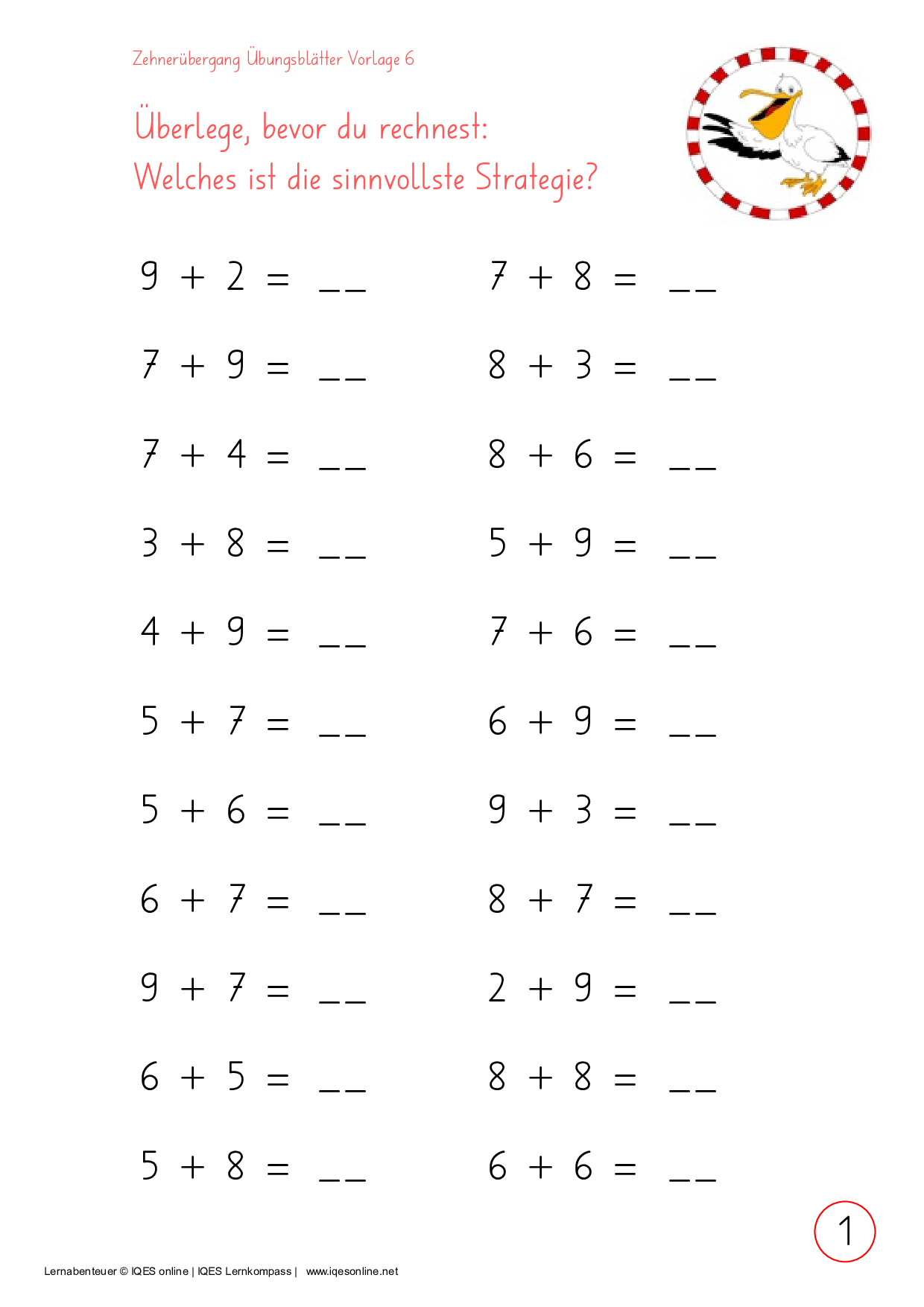Zehnerübergang «Plus Strategie» - Übungsblätter (Vorlage 6)