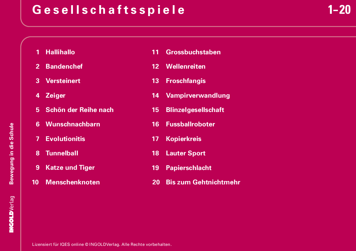 Auf 160 Karten, eingeteilt in acht Kapitel, präsentiert Patrick Fust sein Best-of von Ideen für regelmäßige Bewegungs- und Entspannungssequenzen sowie bewegtes Lernen im Schulalltag.