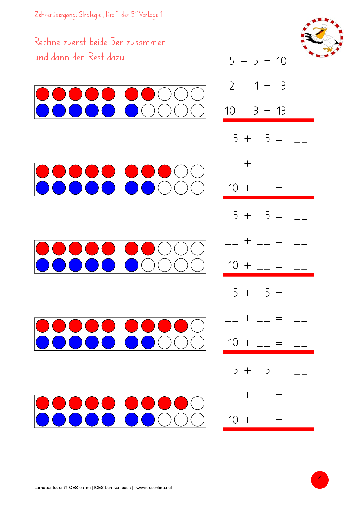 Zehnerübergang «Plus Strategie» - Kraft der 5 (Vorlage 1)