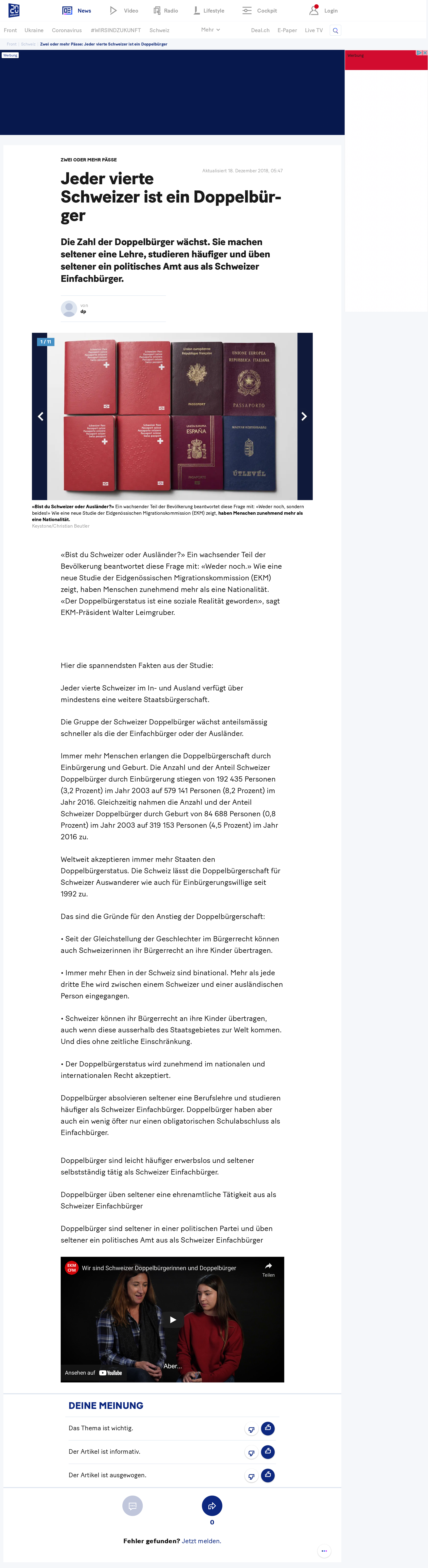 «Jeder vierte Schweizer ist ein Doppelbürger» (20 Minuten)