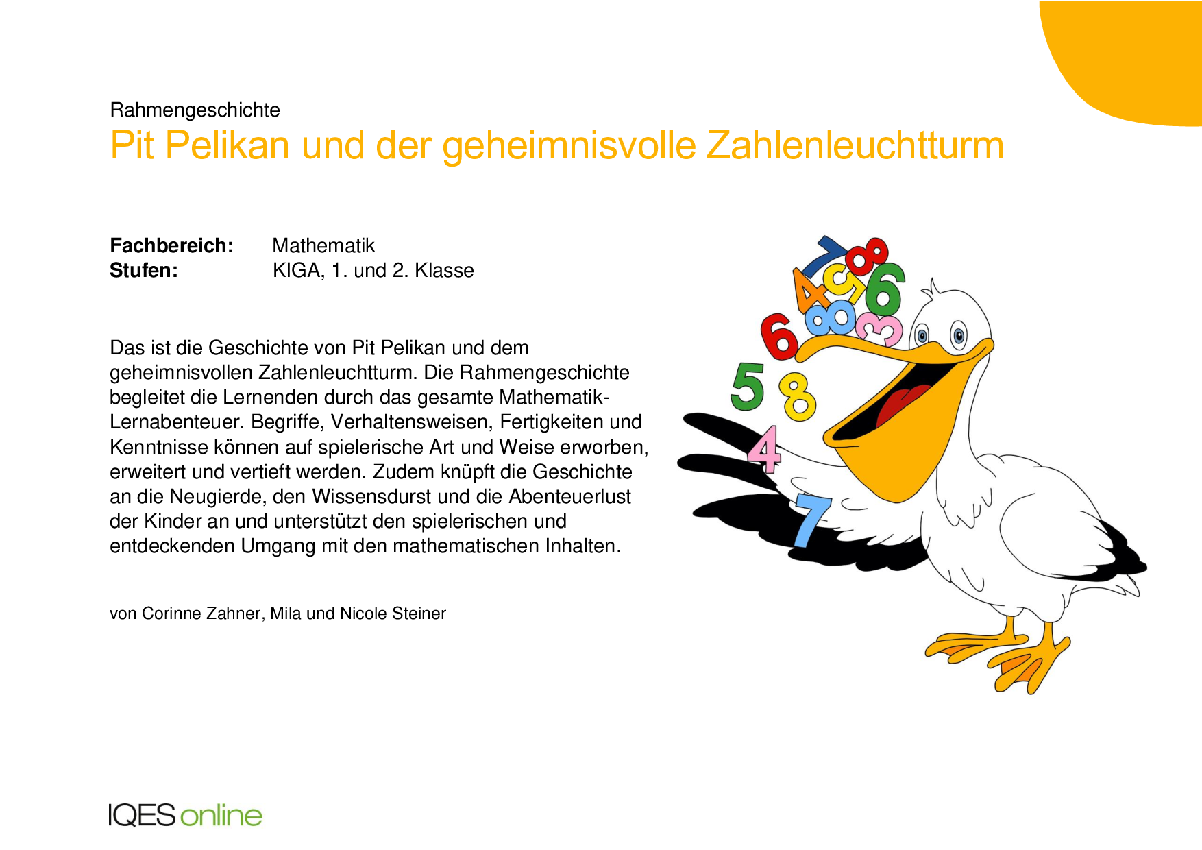 Die Geschichte von Pit Pelikan und dem geheimnisvollen Zahlenleuchtturm. Die Rahmengeschichte begleitet die Lernenden durch das gesamte Mathematik-Lernabenteuer.