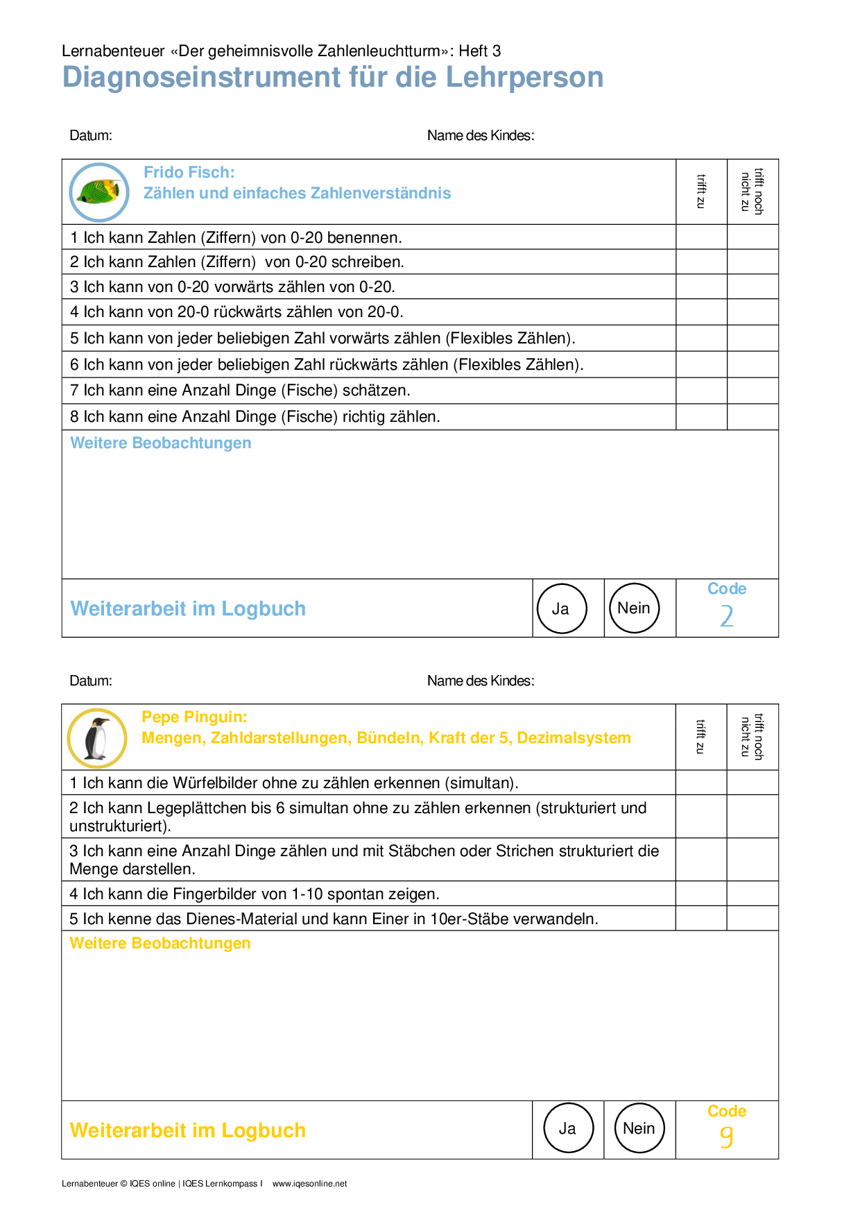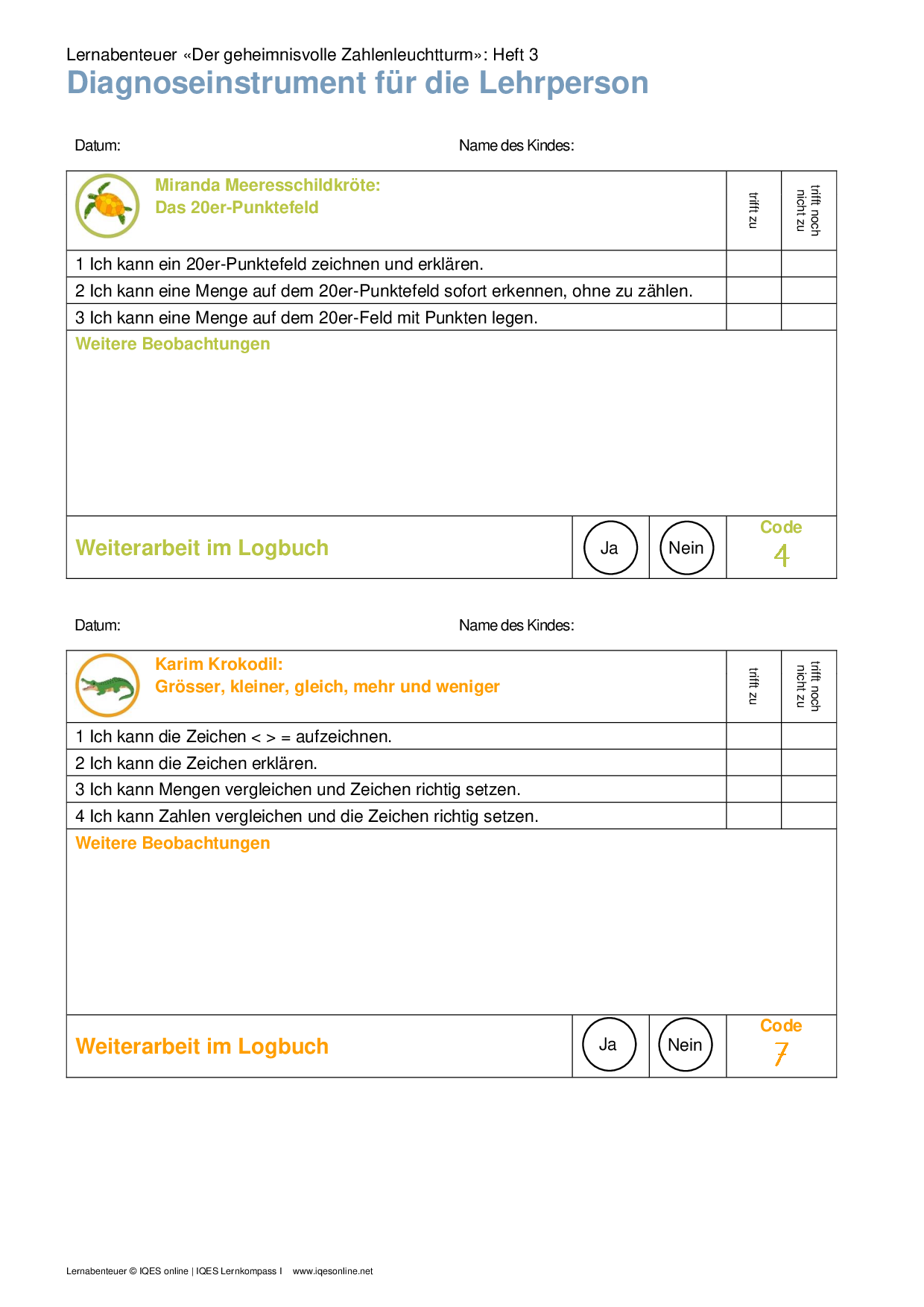 Mit diesen Instrumenten kann die Lehrperson den individuellen Lernstand zu den einzelnen Basiskompetenzen erfassen. Sie dienen der individuellen Dokumentation und erleichtern die Übersicht über die weiteren Lern- und Entwicklungsschritte eines Kindes.