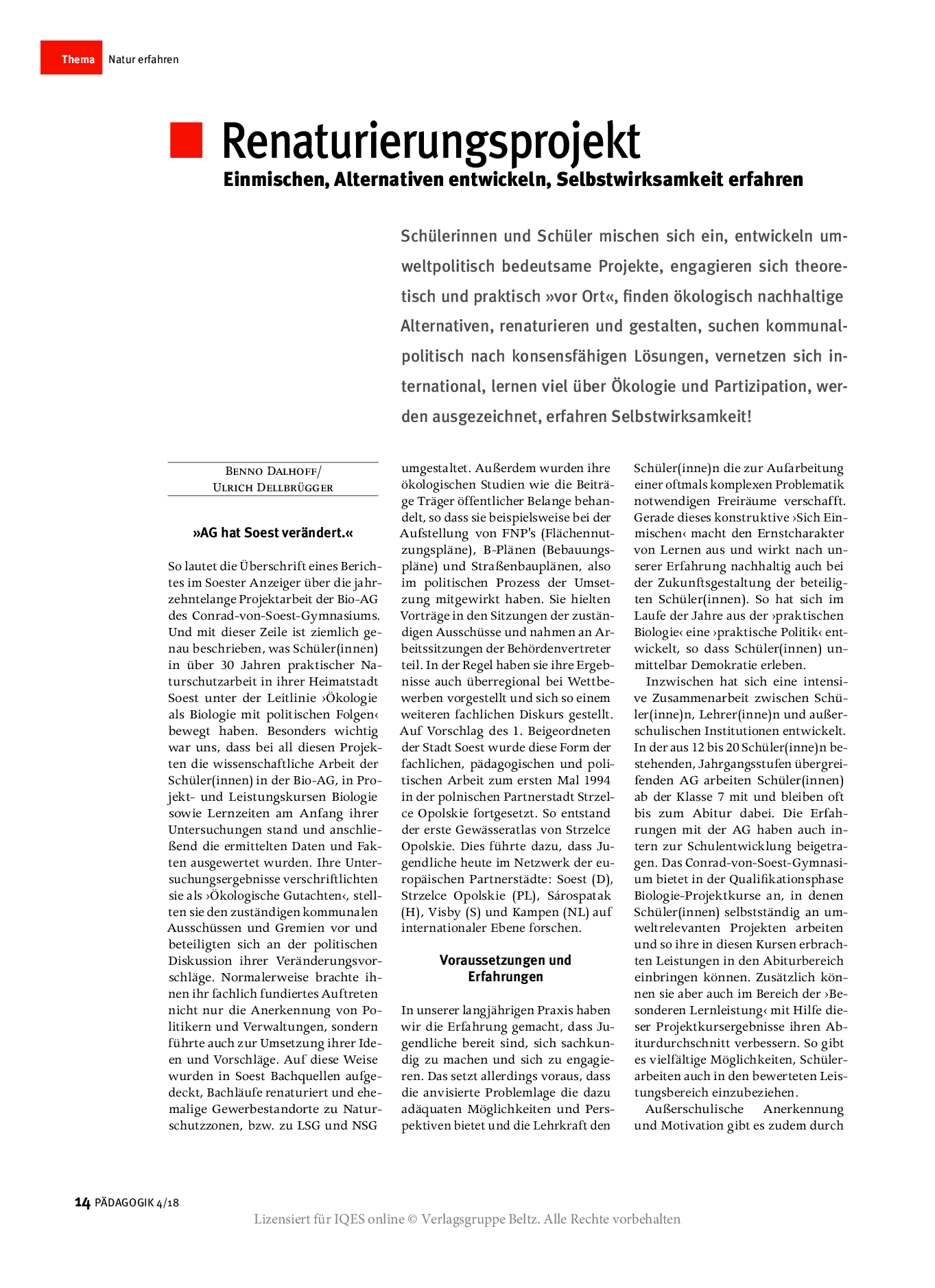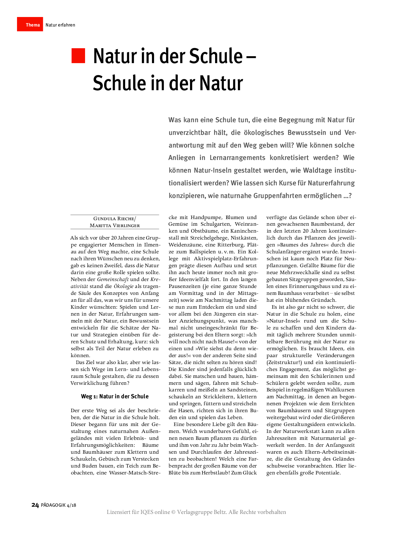 Herkunft: PÄDAGOGIK 4/18, Lizensiert für IQES online © Verlagsgruppe Beltz