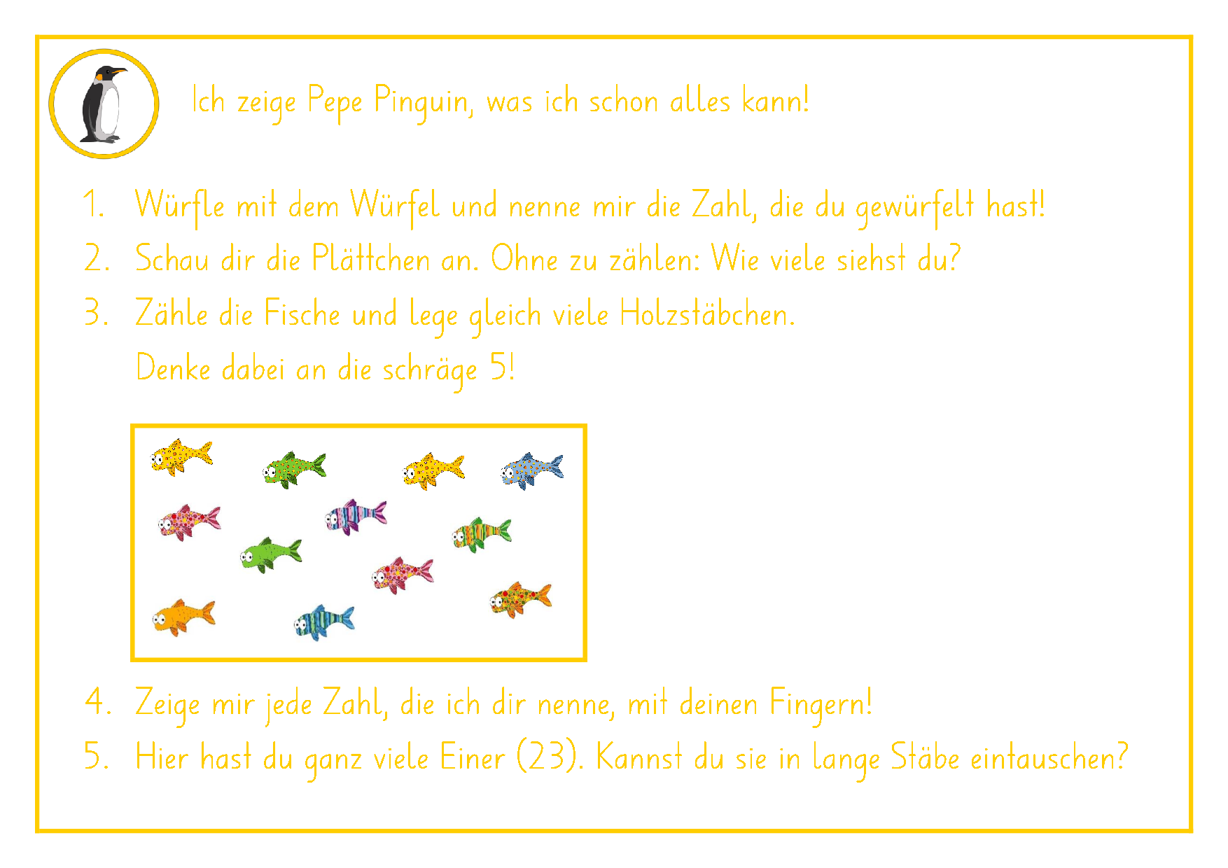 Eine wesentliche Grundlage des Lernabenteuers mit Pit Pelikan bildet eine ressourcenorientierte Lernstandserfassung (Diagnose). Diese soll allen am Lernen beteiligten Personen aufzeigen, wo sich das Kind im Lernprozess befindet, welche Kompetenzen bereits vorhanden und welches seine nächsten individuellen Lernschritte sind.