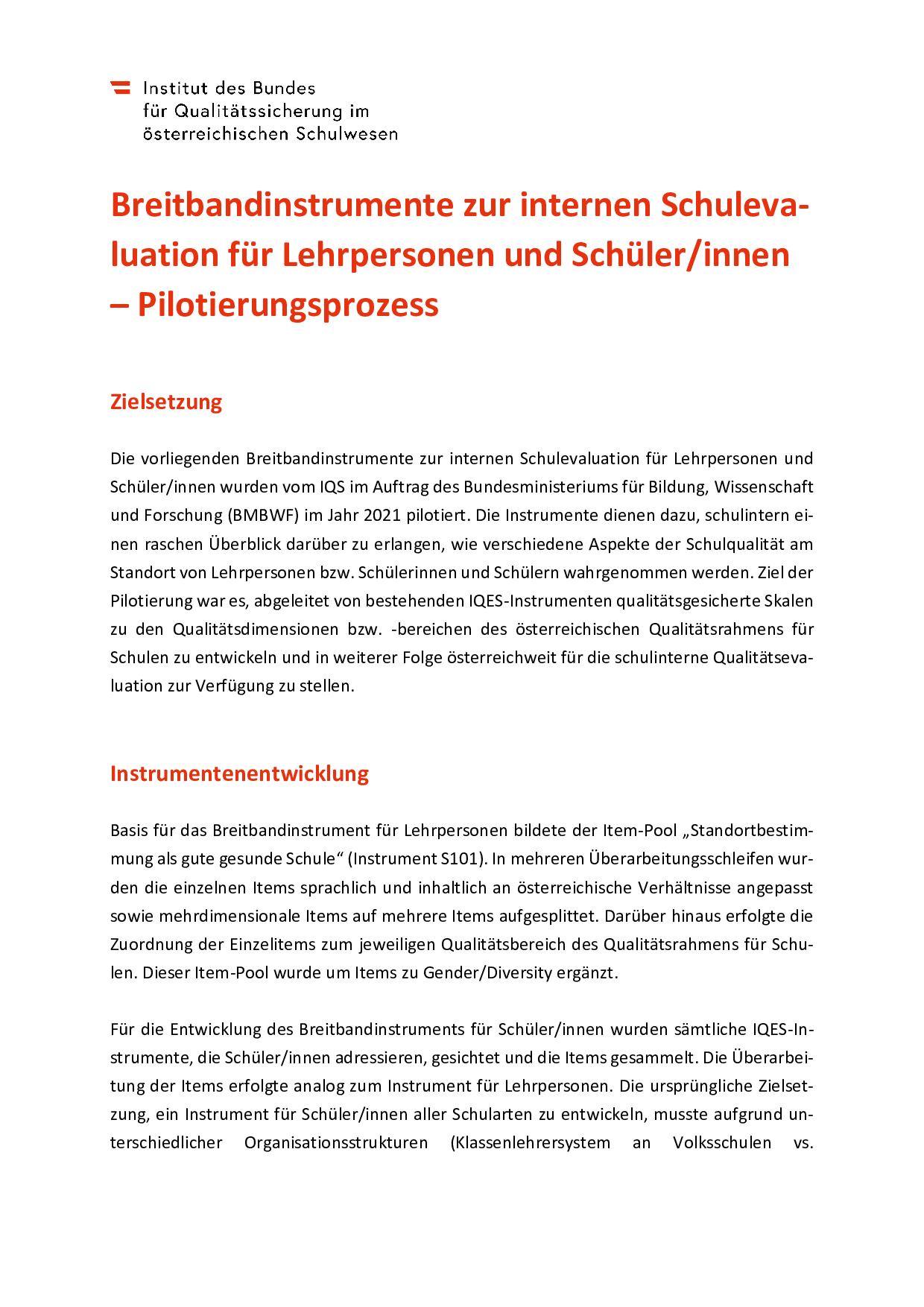 Breitbandinstrumente zur internen Schulevaluation für Lehrpersonen und Schüler/innen