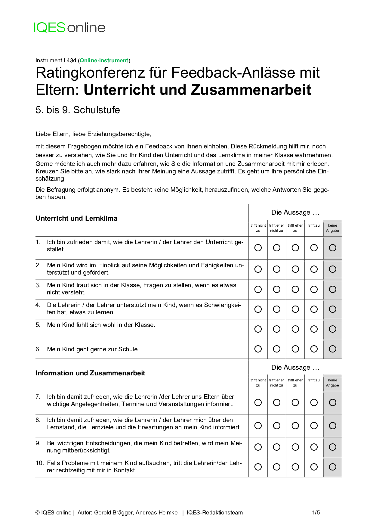 L43d Ratingkonferenz mit Eltern: Unterricht und Zusammenarbeit (5.-9. Schulstufe)