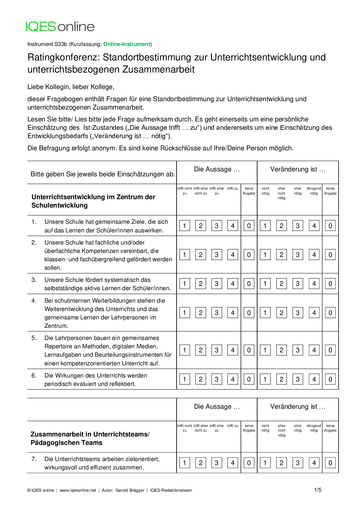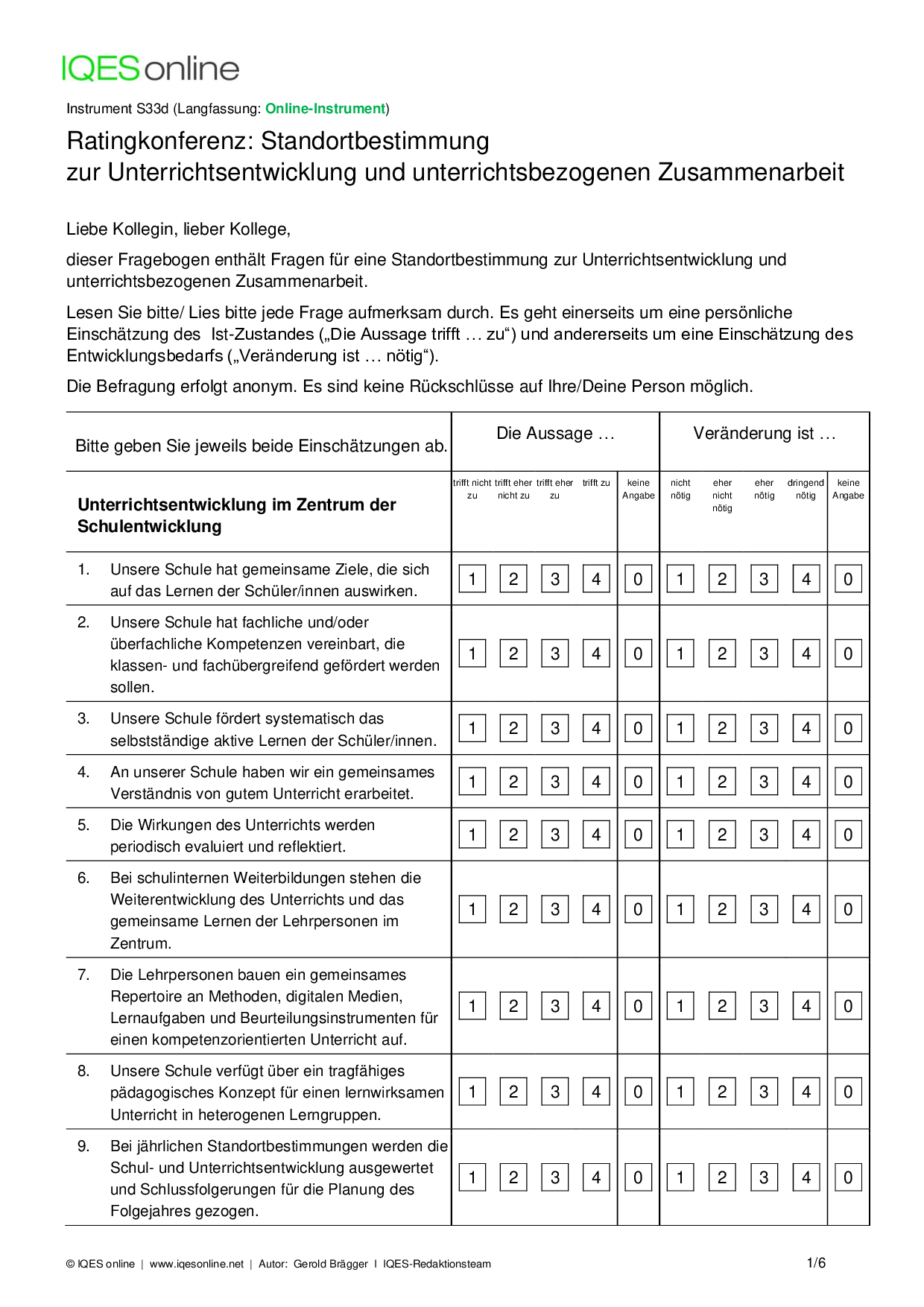 S33d Ratingkonferenz: Standortbestimmung zur Unterrichtsentwicklung (Langfassung)