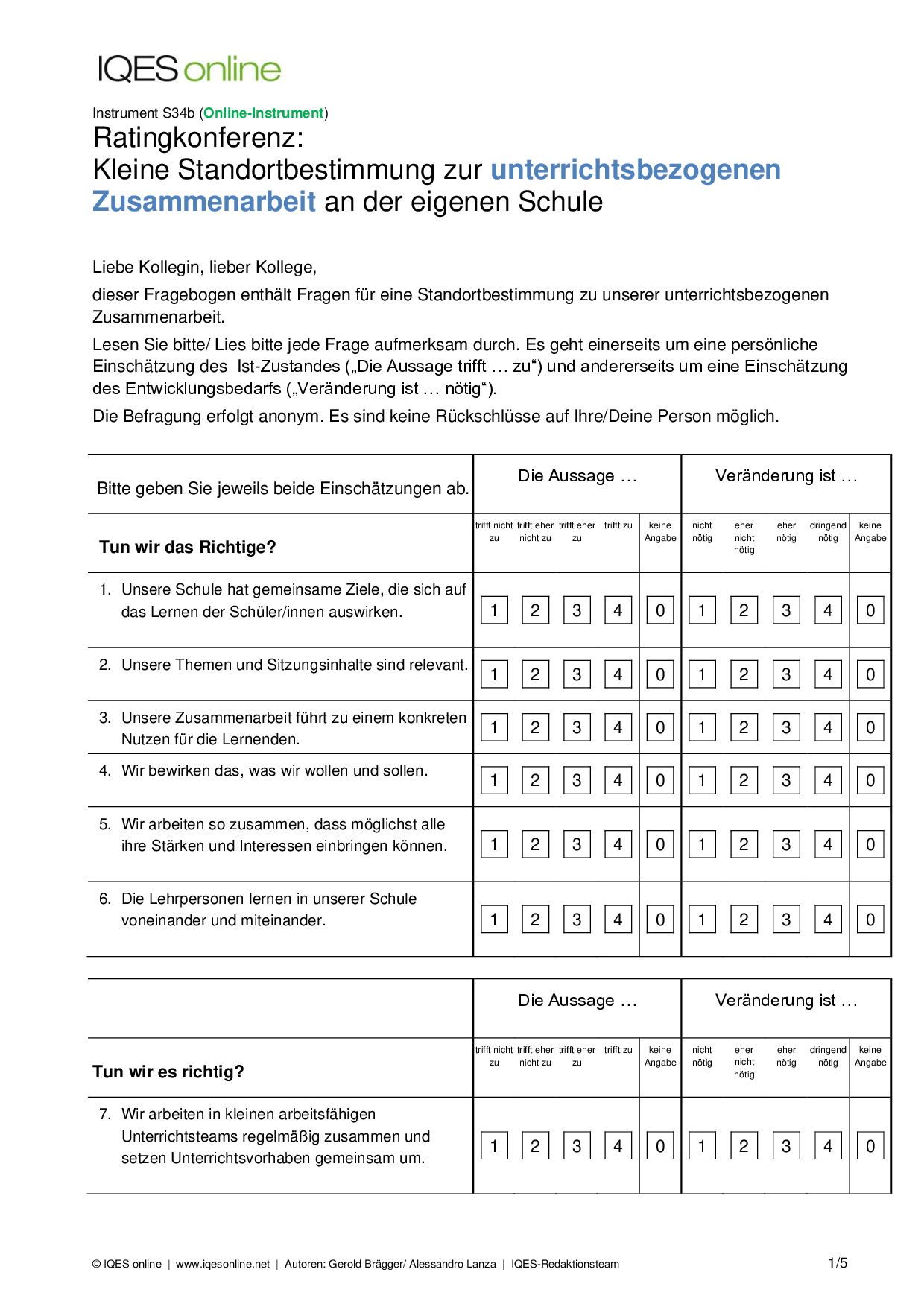 S34b Ratingkonferenz: Standortbestimmung zur unterrichtsbezogenen Zusammenarbeit