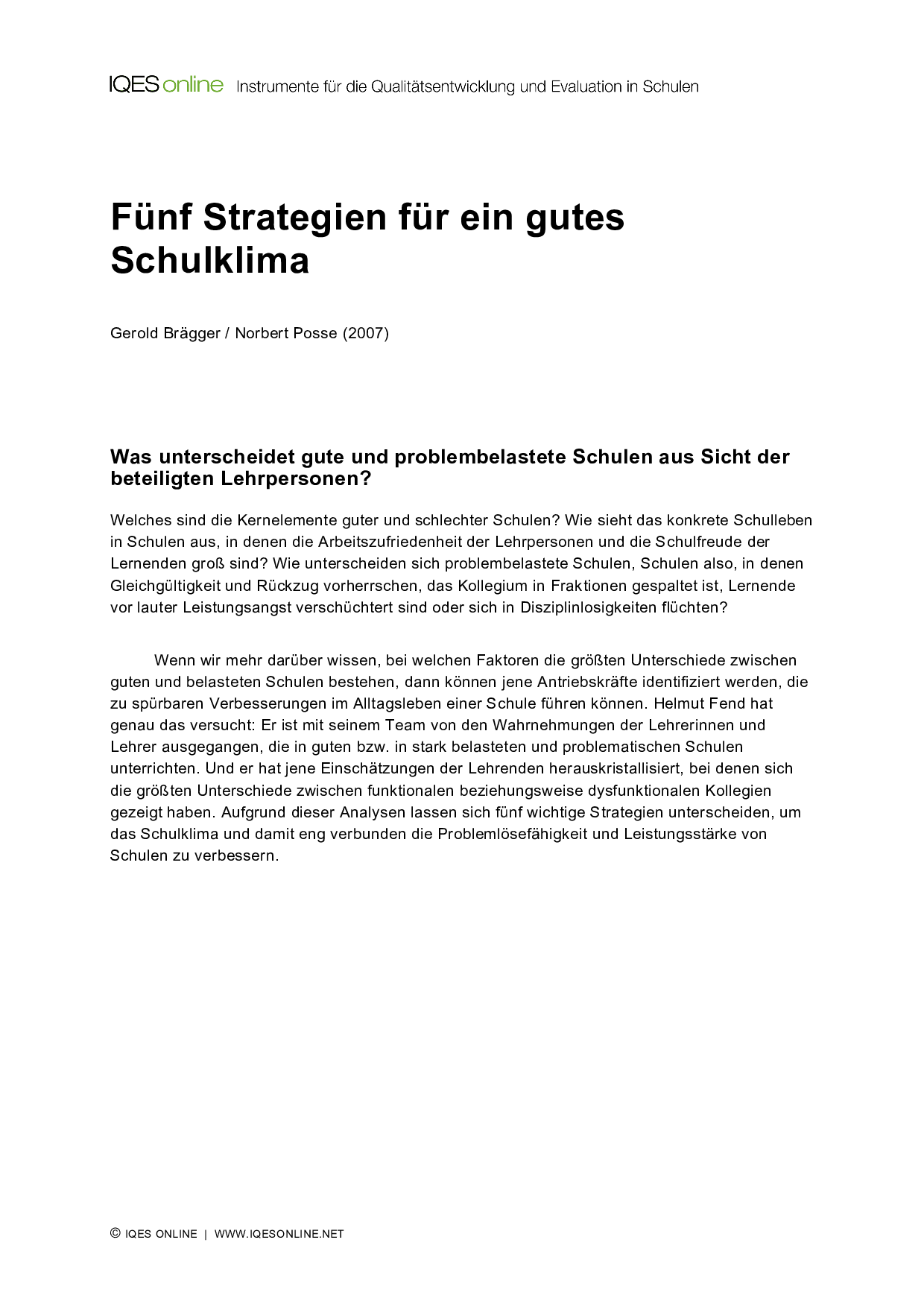 Welches sind die Kernelemente guter und schlechter Schulen? Wenn wir mehr darüber wissen, bei welchen Faktoren die größten Unterschiede bestehen, können jene Antriebskräfte identifiziert werden, die zu spürbaren Verbesserungen im Alltagsleben einer Schule führen können.