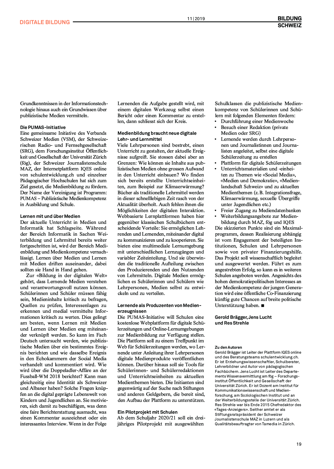 Herkunft: BILDUNG SCHWEIZ 11/2019
