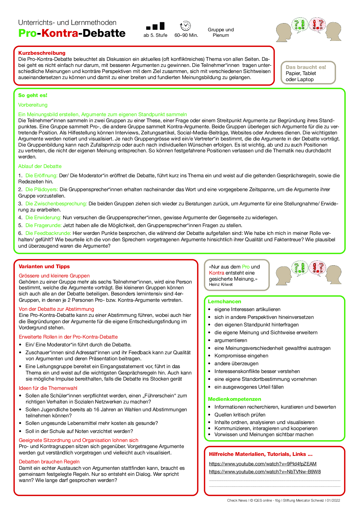 Pro-Kontra-Debatte – Karte Unterrichts- und Lernmethoden