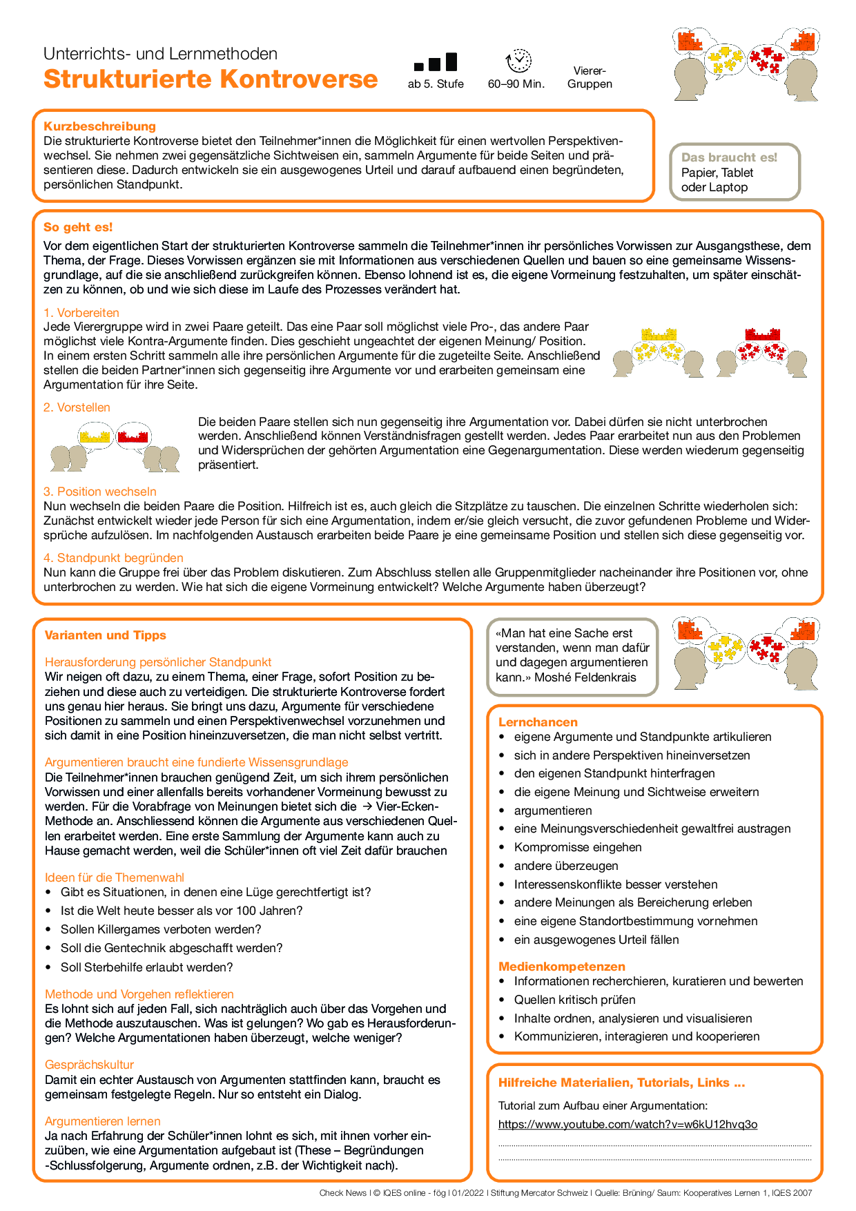 Strukturierte Kontroverse – Karte Unterrichts- und Lernmethoden