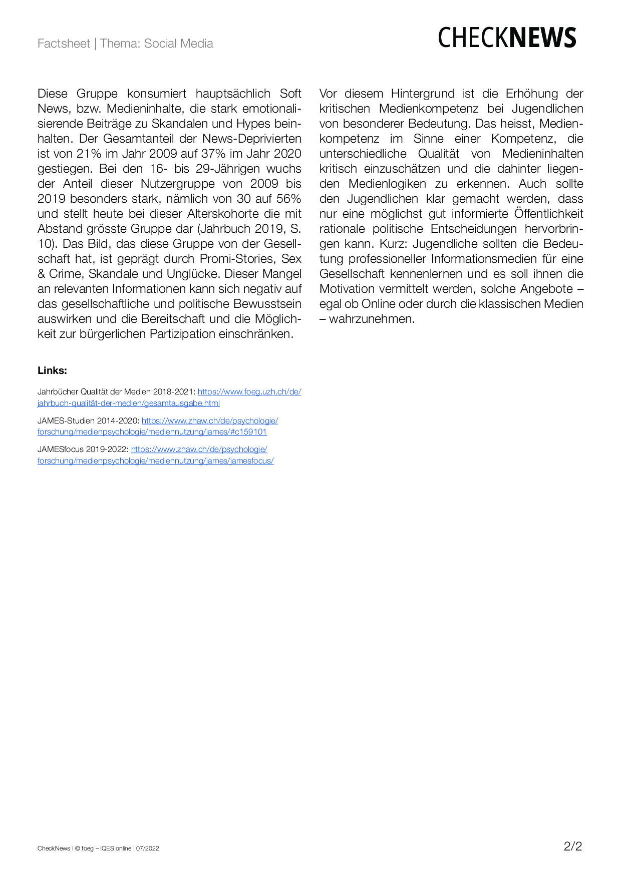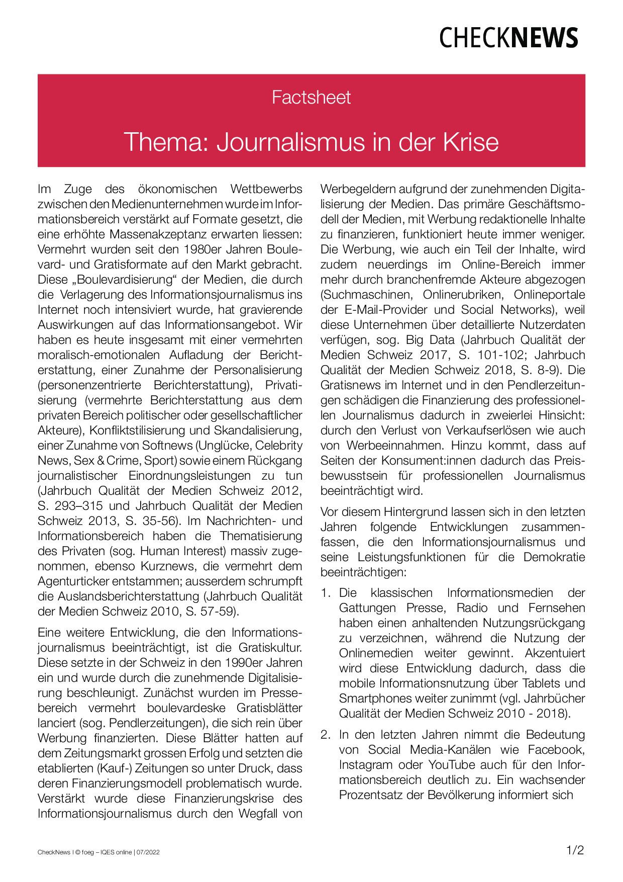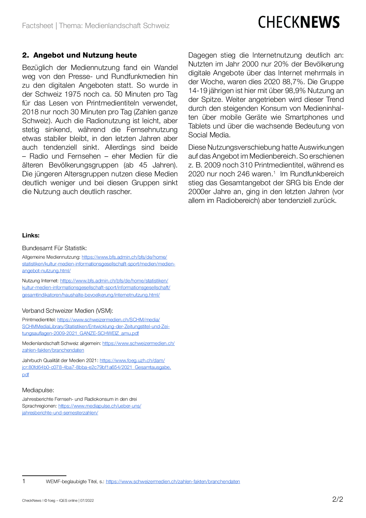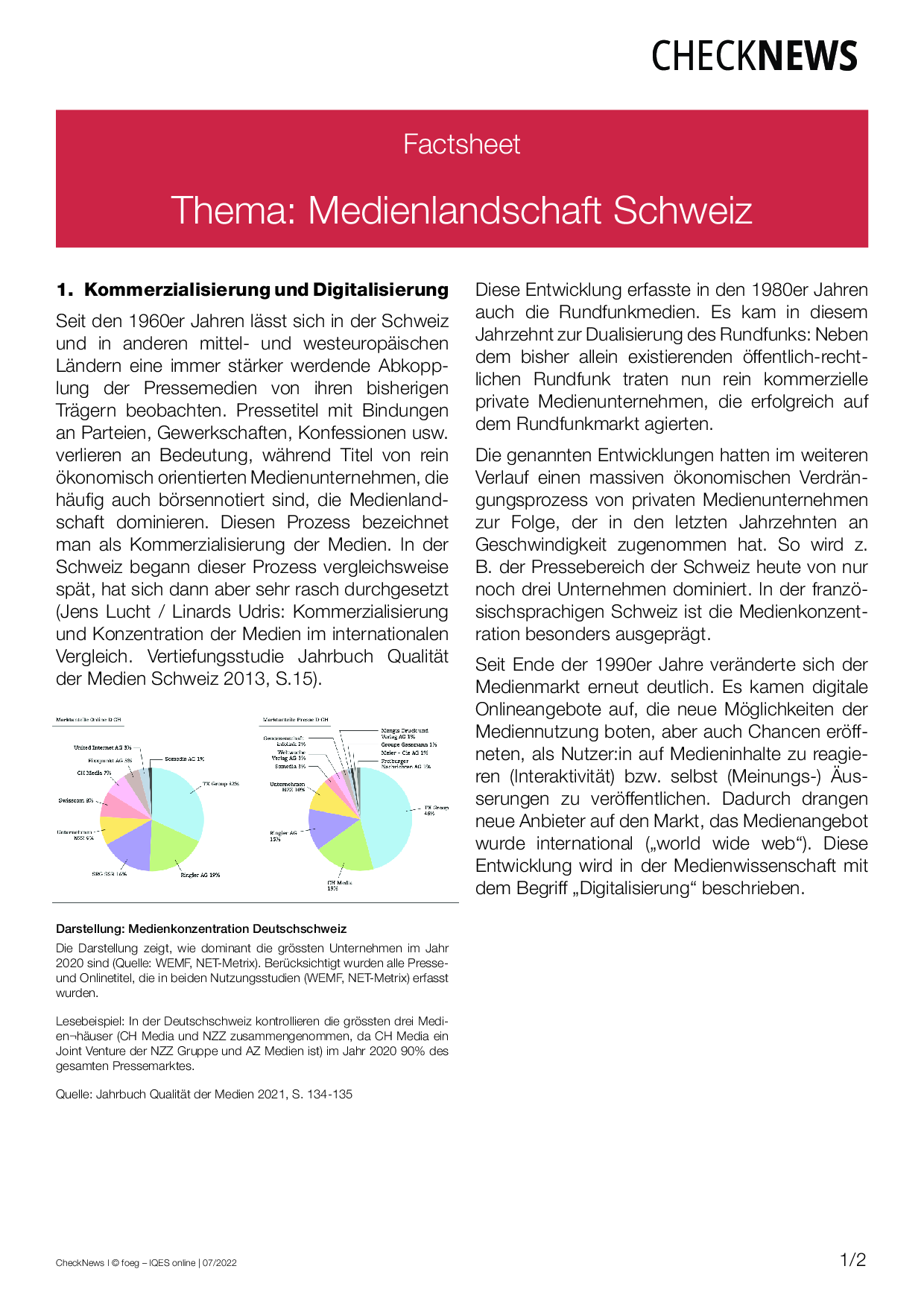 Medienlandschaft Schweiz – CheckNews Factsheet