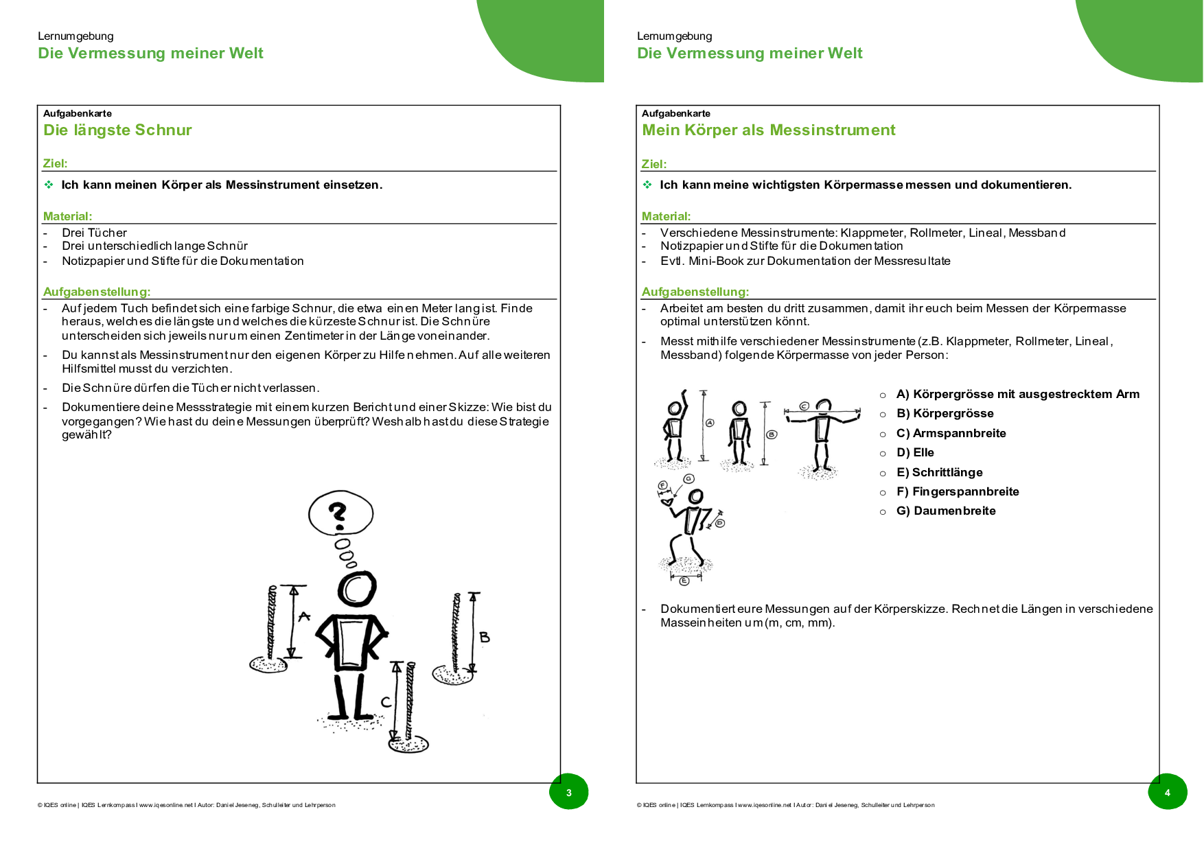 Aufgabenkarten Booklet «Die Vermessung meiner Welt» - beidseitig