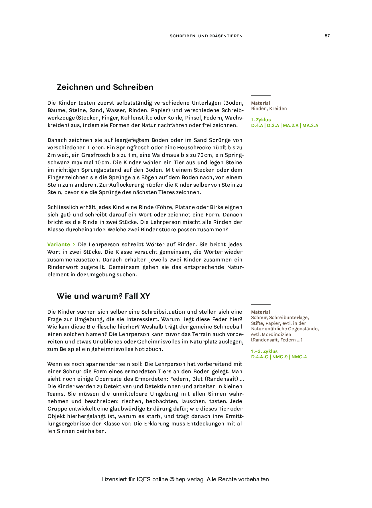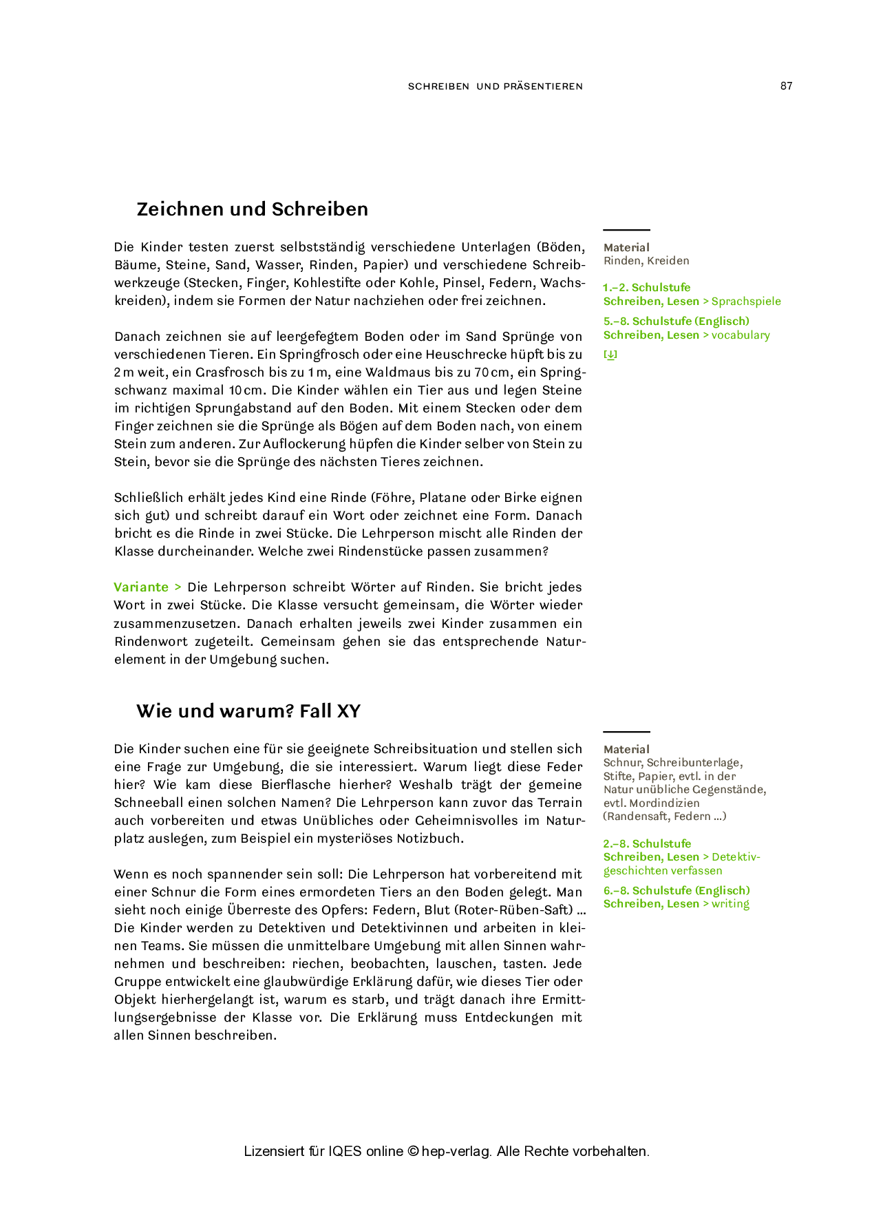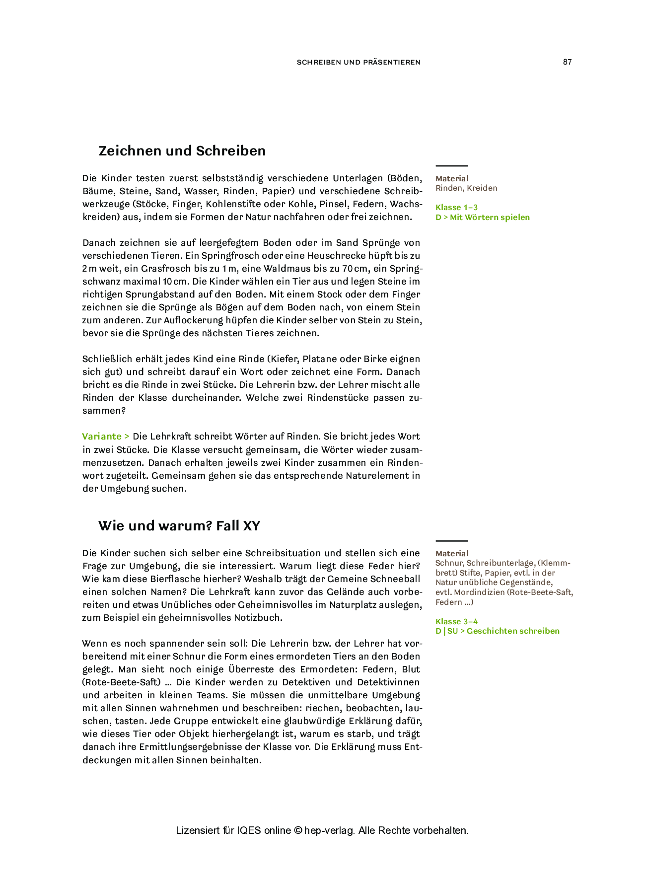 Schreiben und präsentieren (aus: Draußen unterrichten / Ausgabe für die Schweiz)