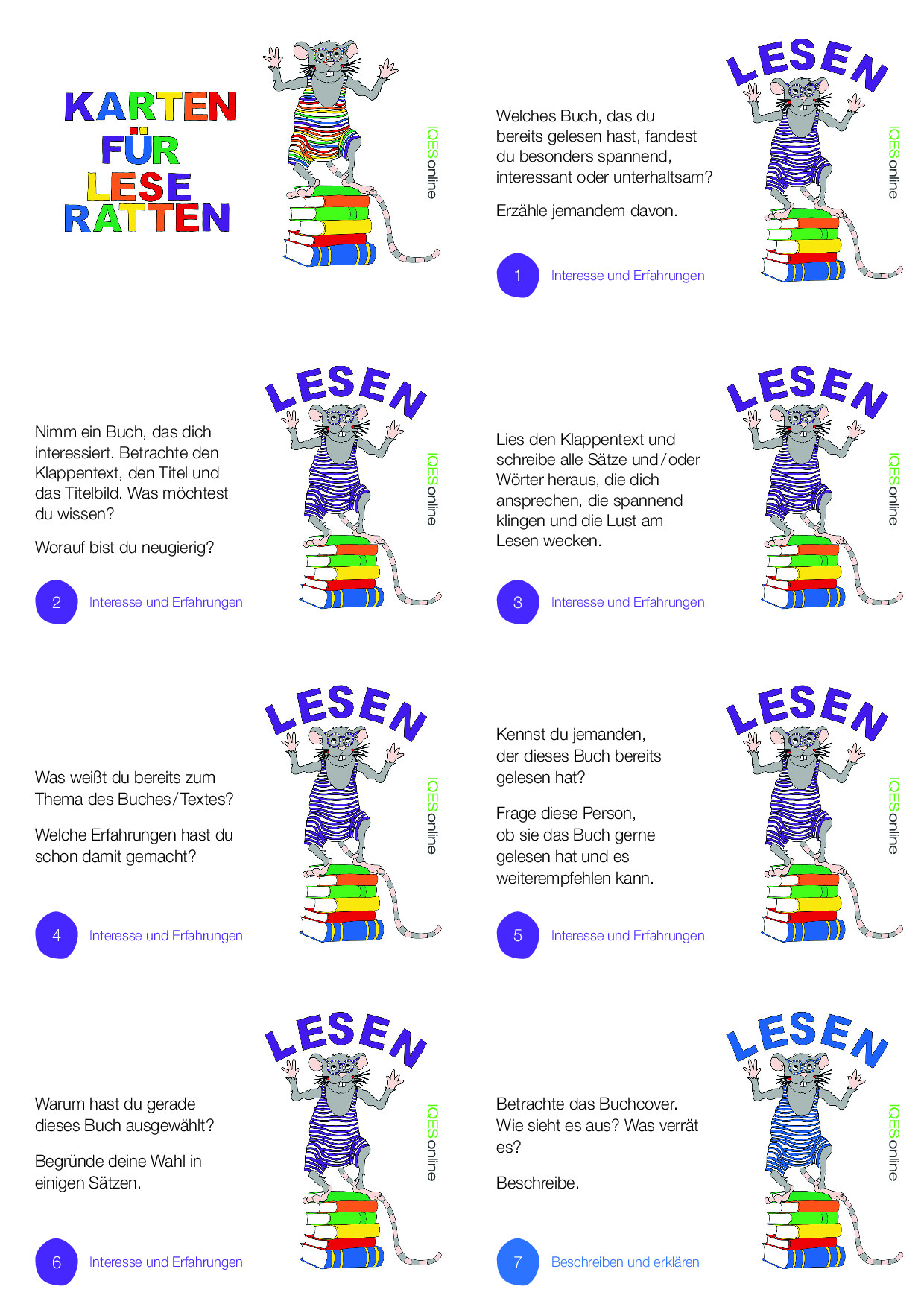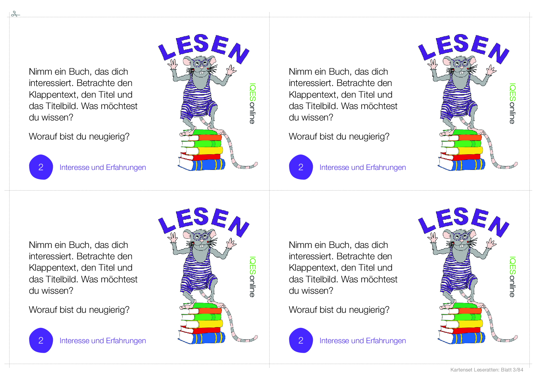 Kartenset Leseratten Kopiervorlage (Mengenkopien)